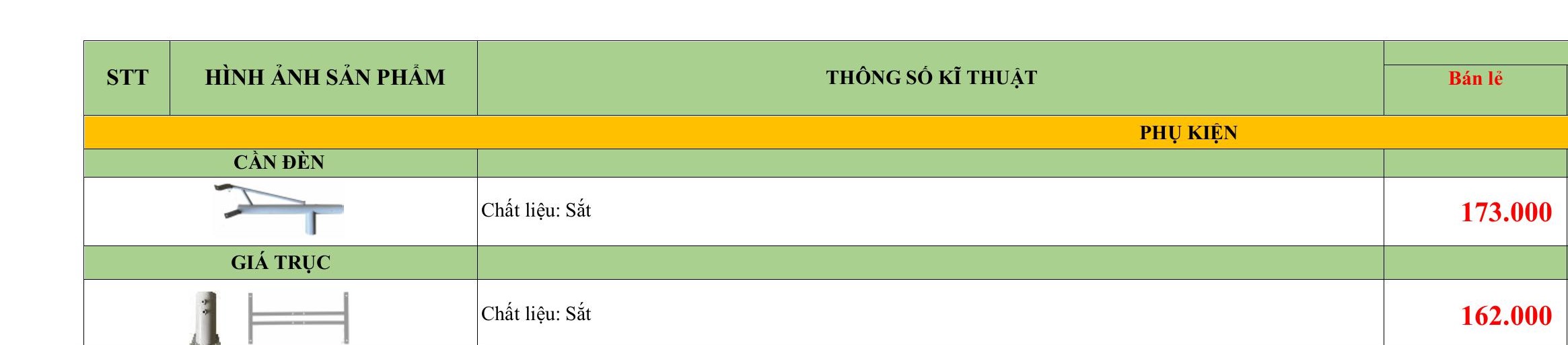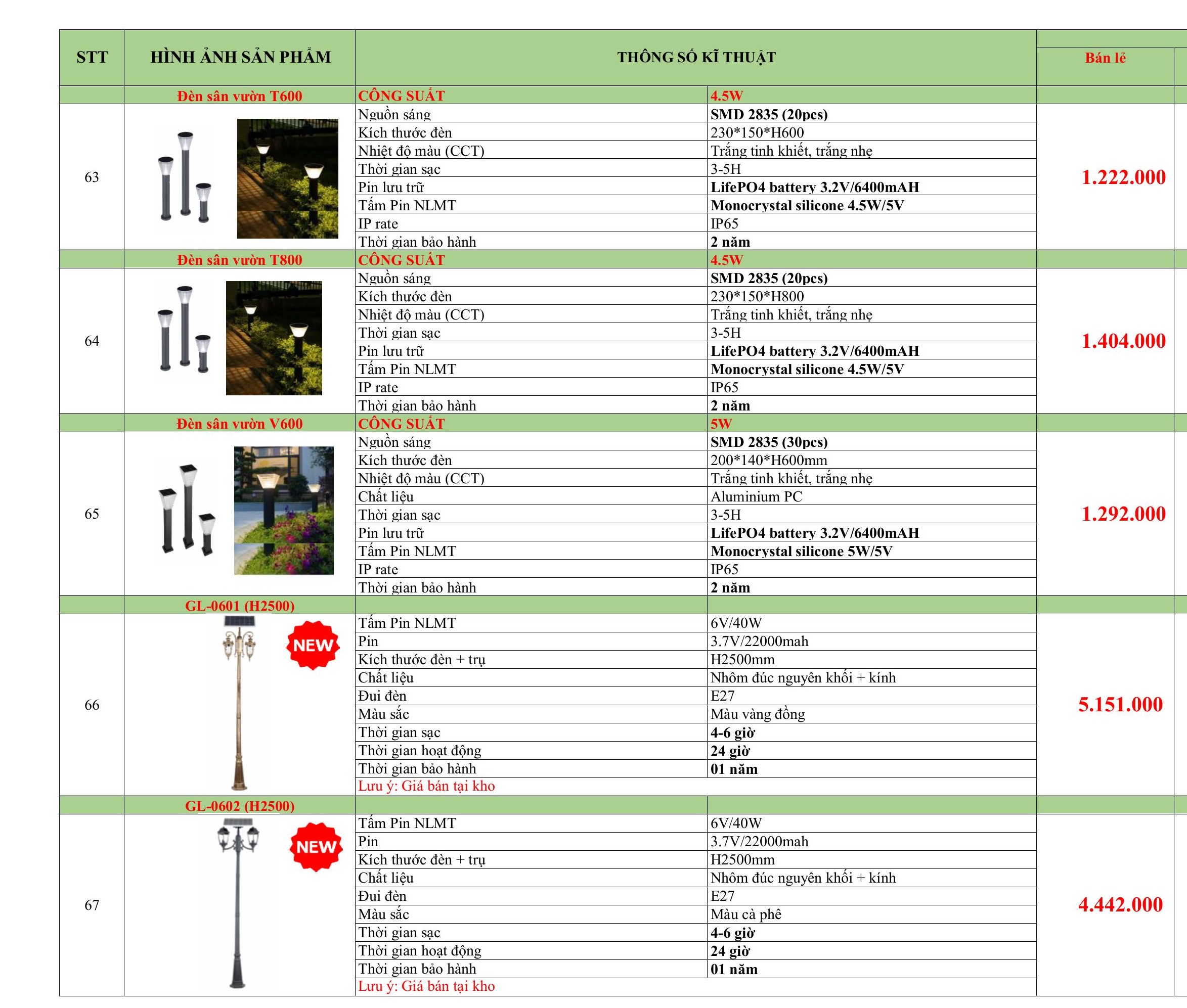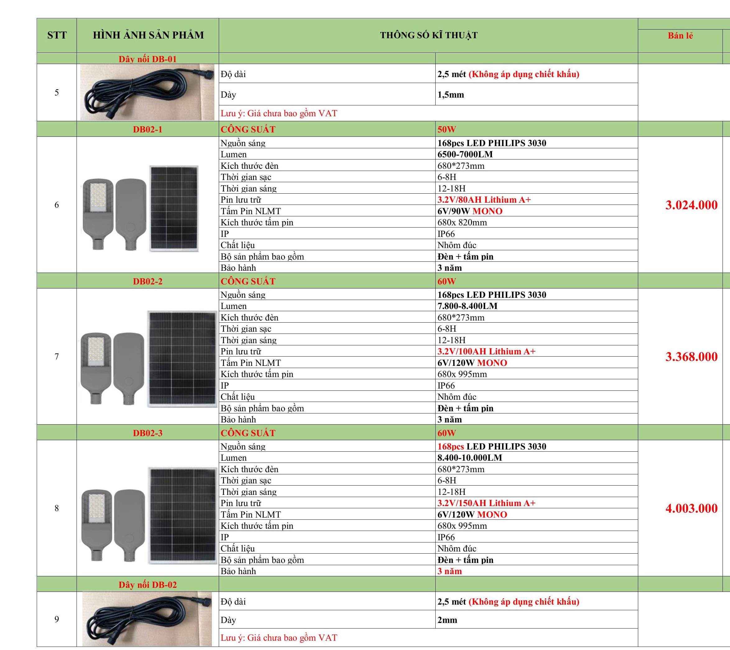 Giá tham khảo vật tư đèn năng lượng mặt trời 2025