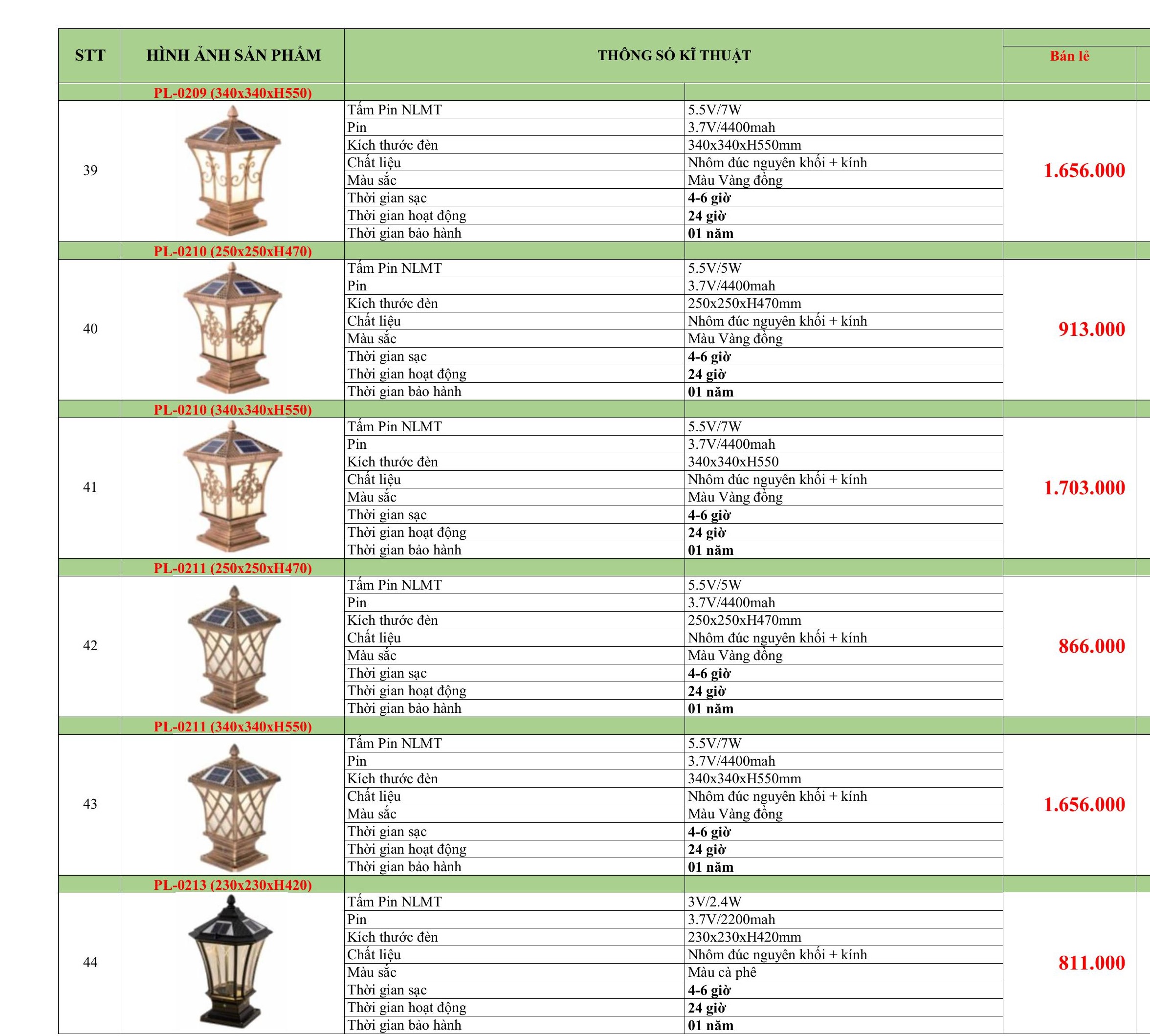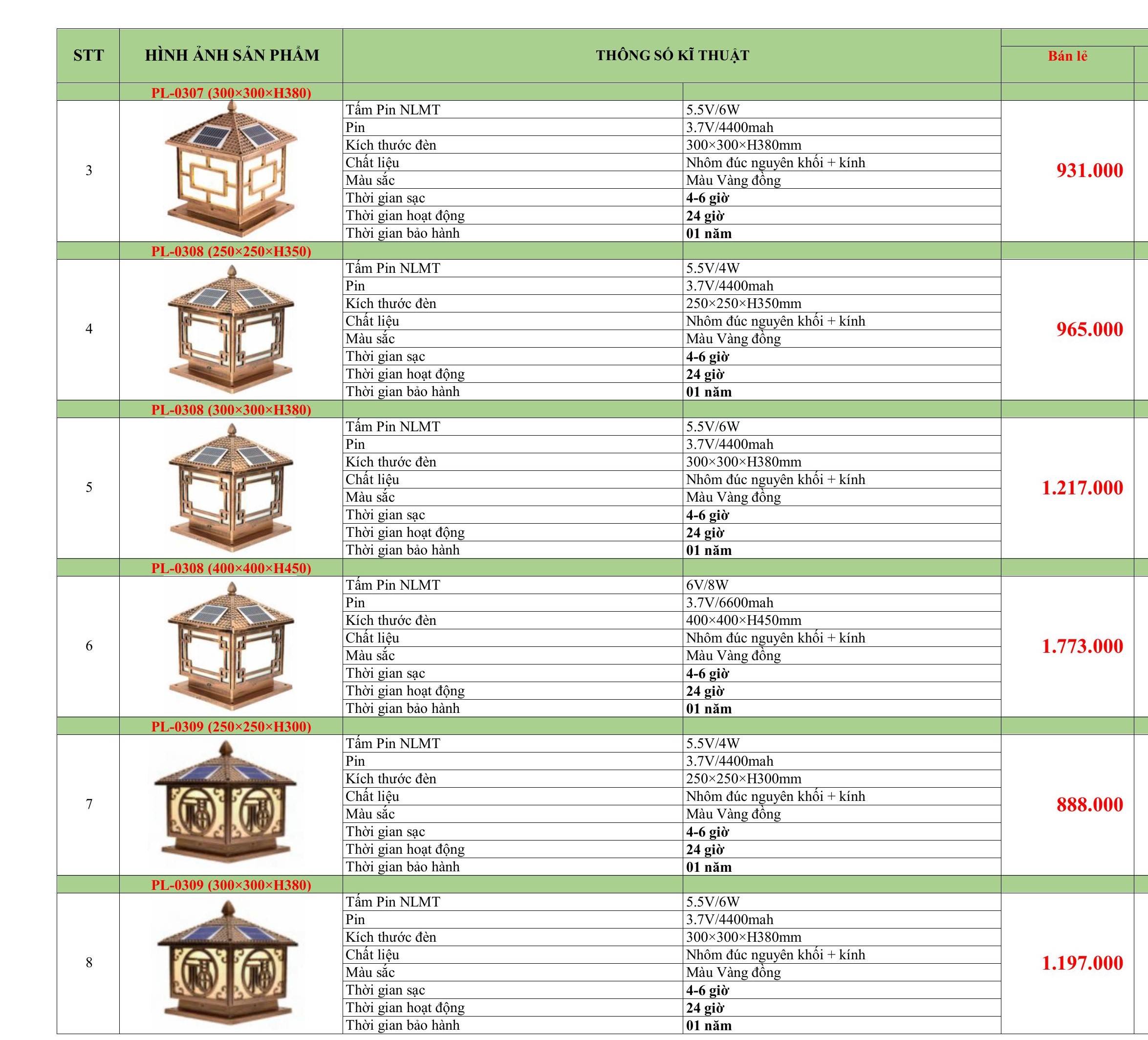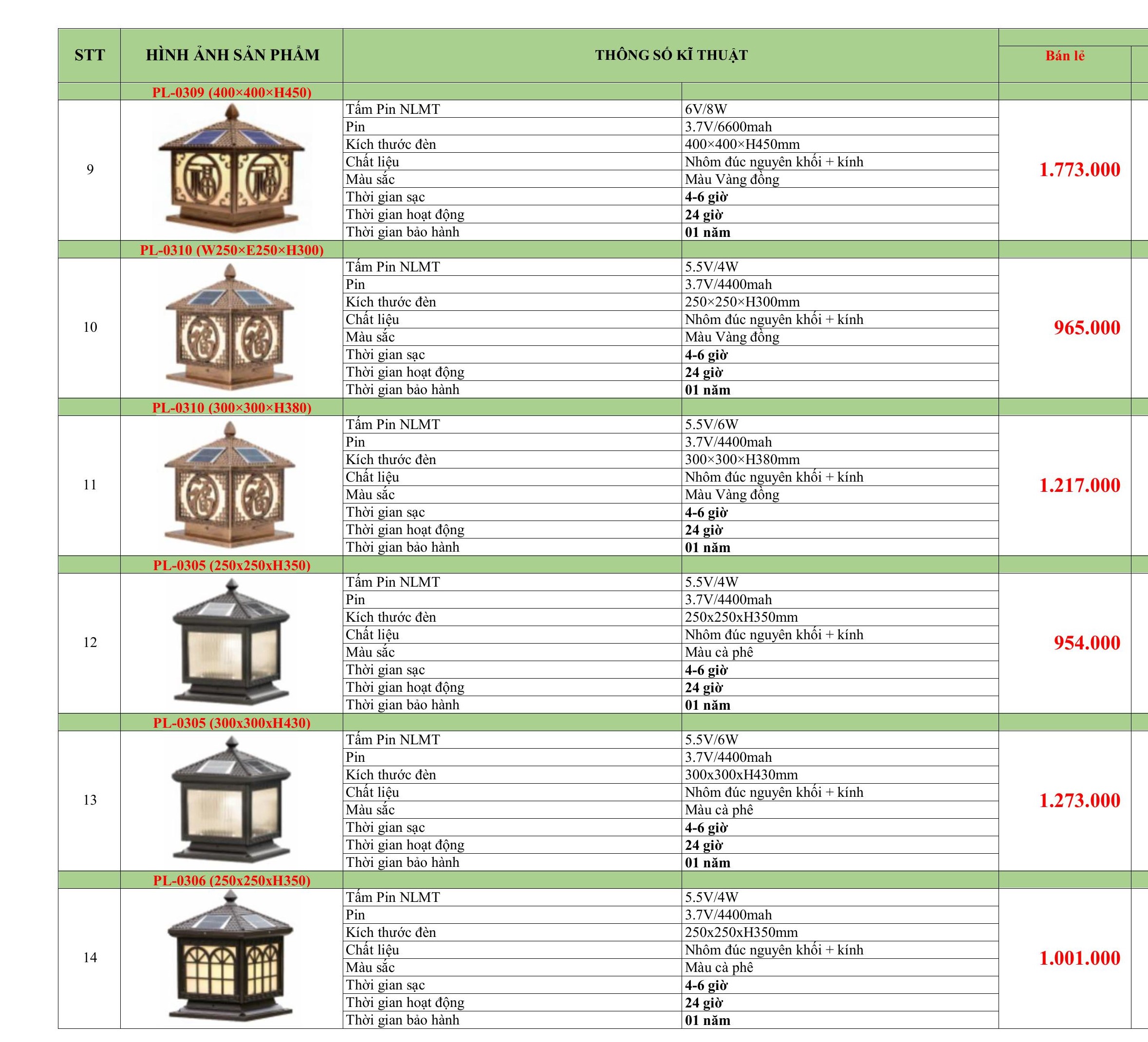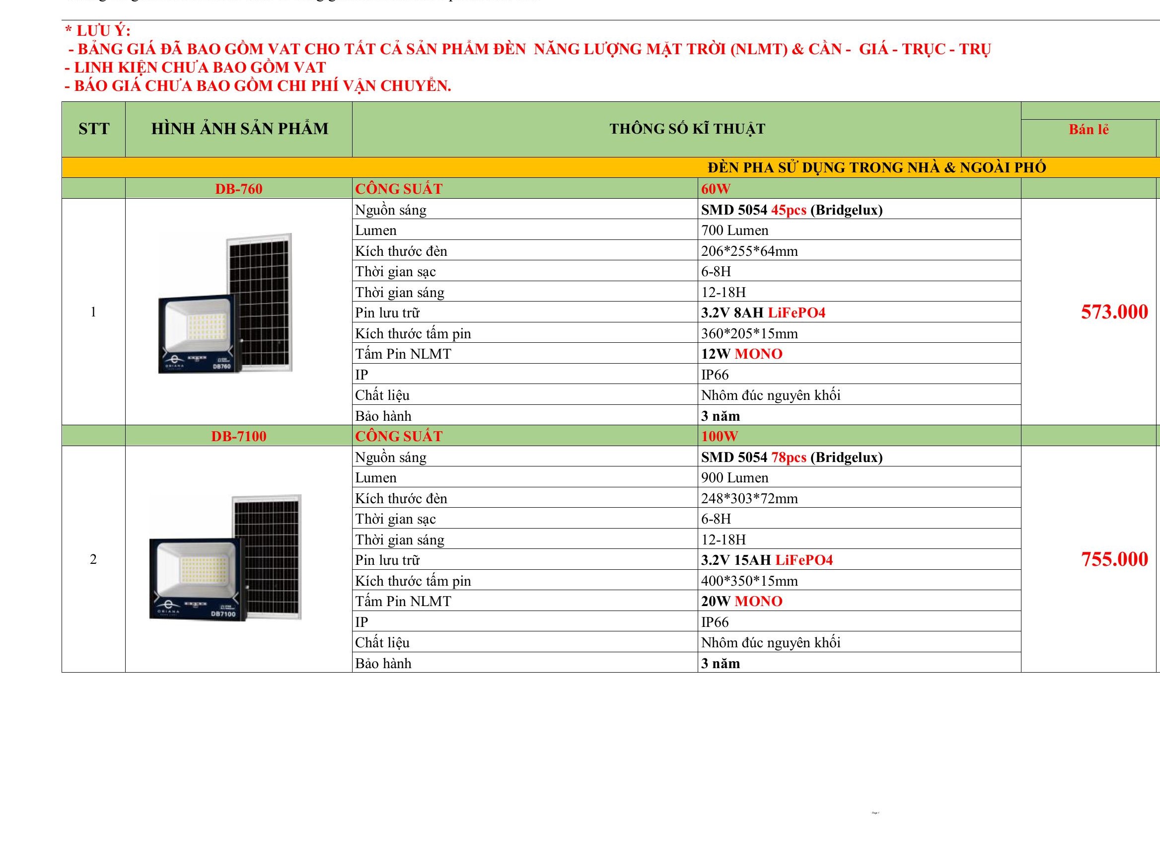 Giá tham khảo vật tư đèn năng lượng mặt trời 2025