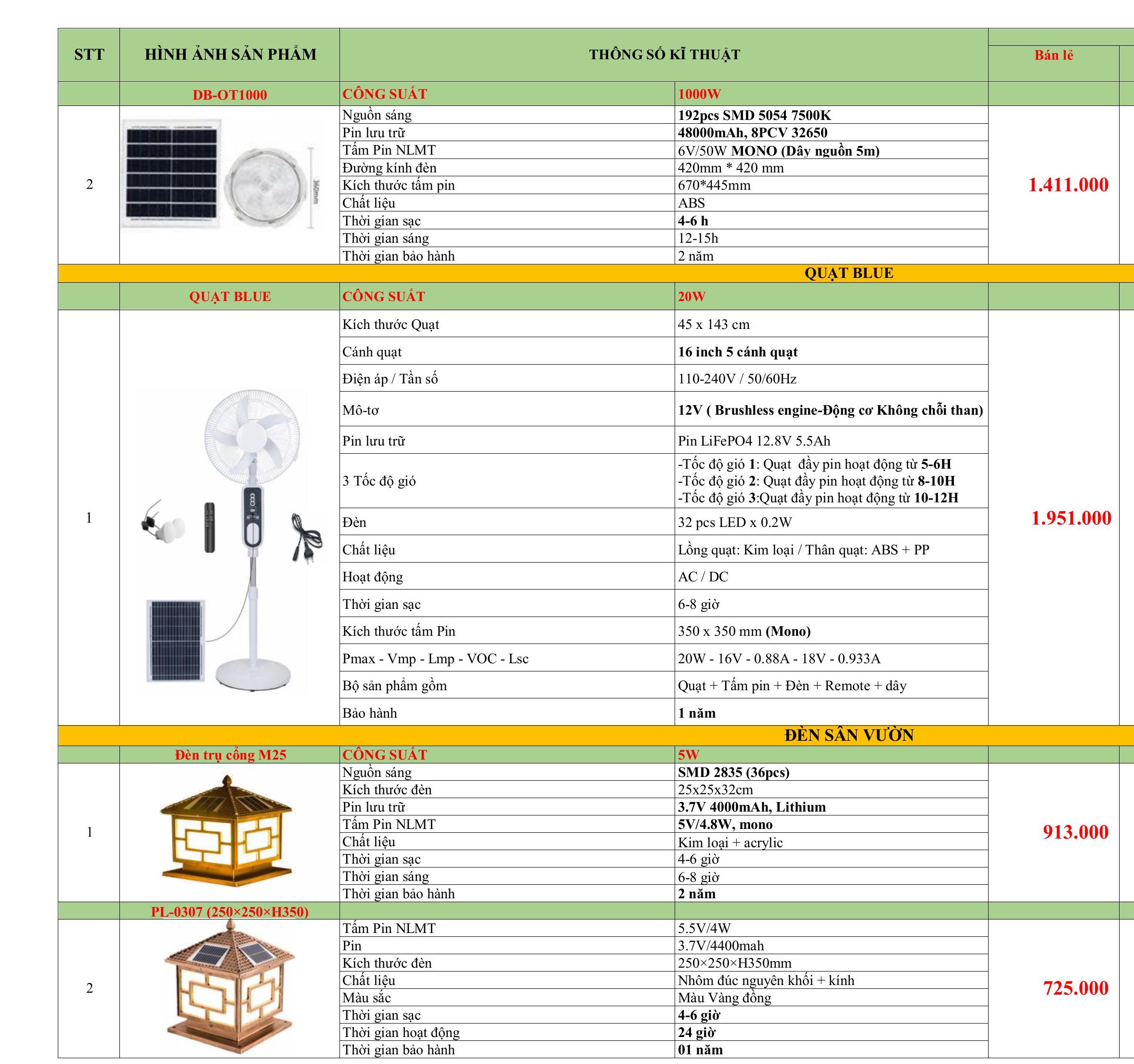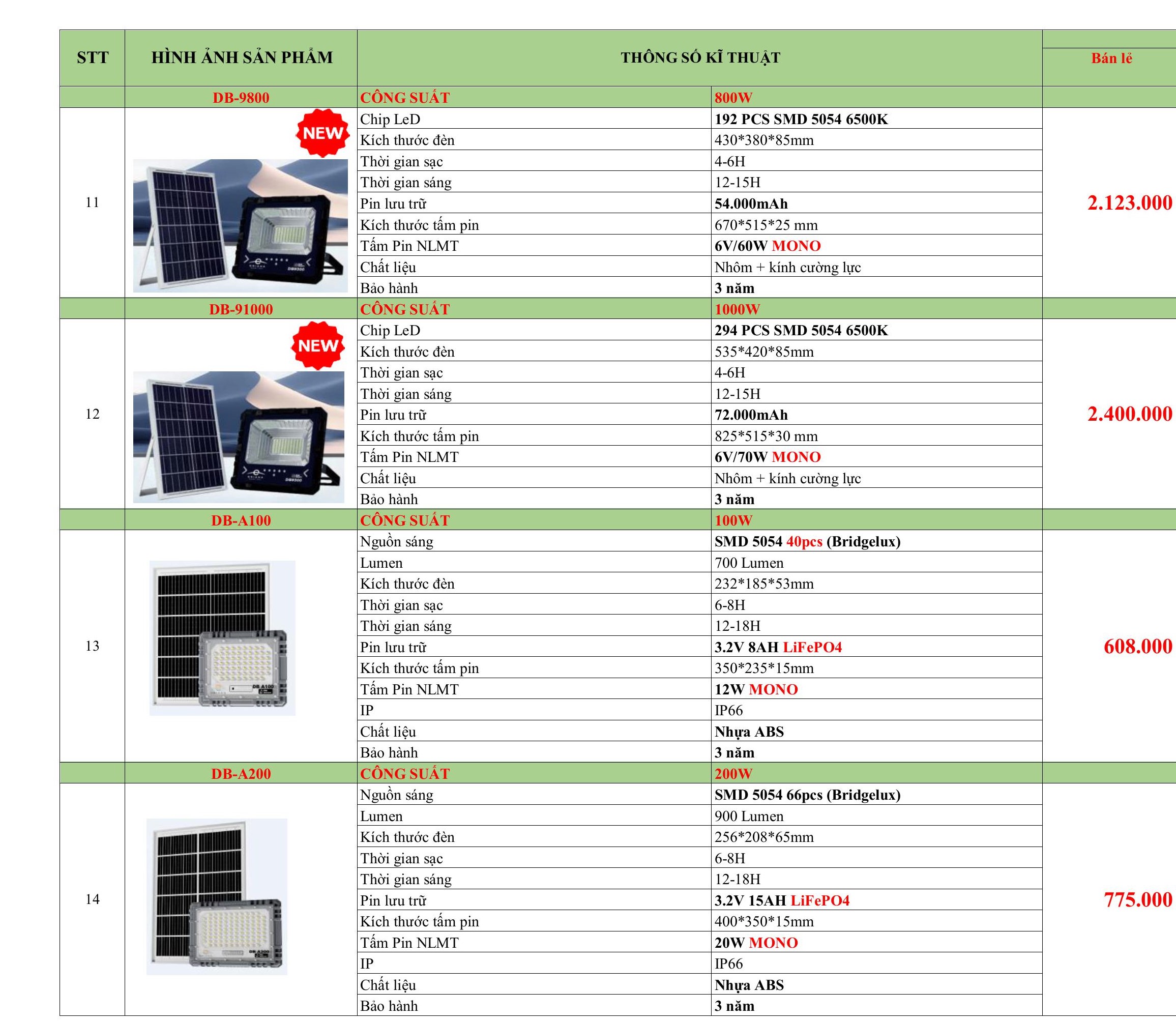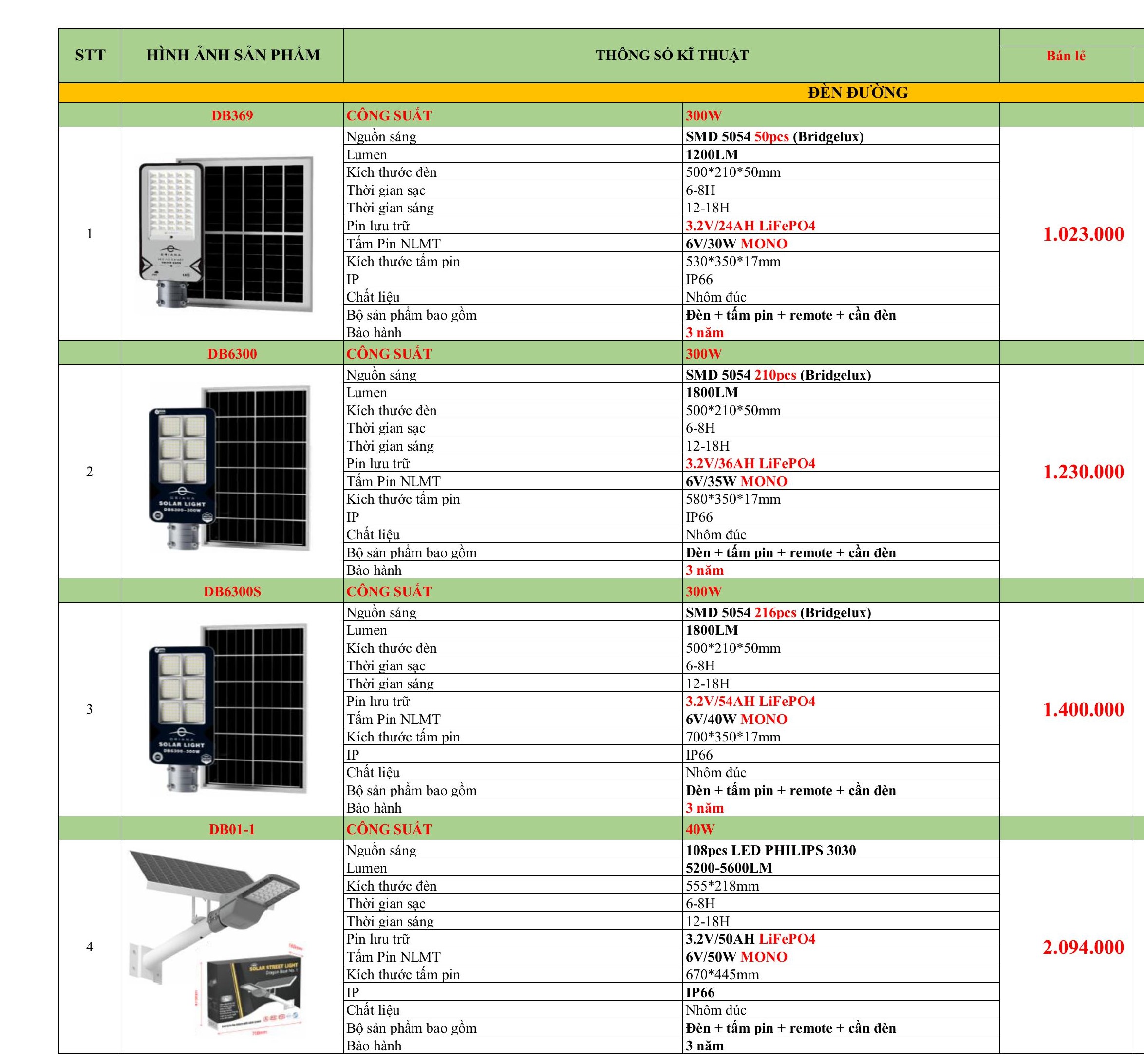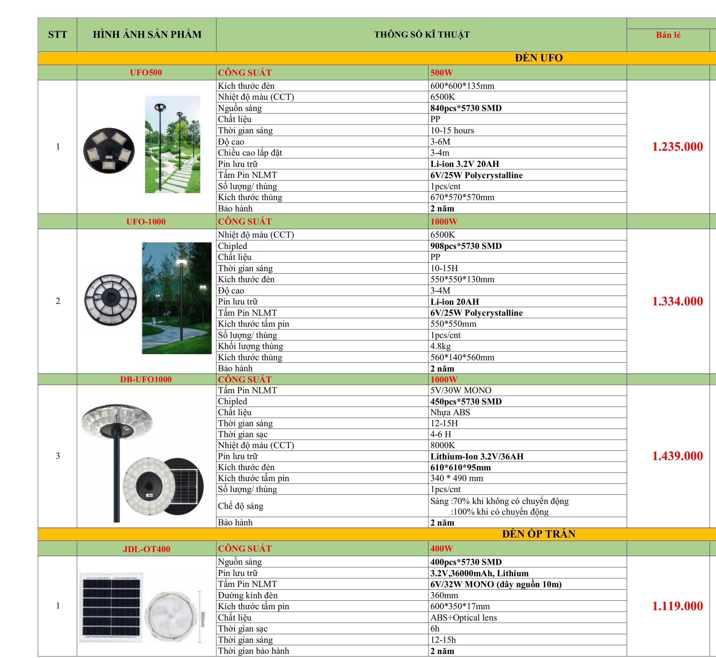 Bảng Giá Đèn Năng Lượng Mặt Trời 2025