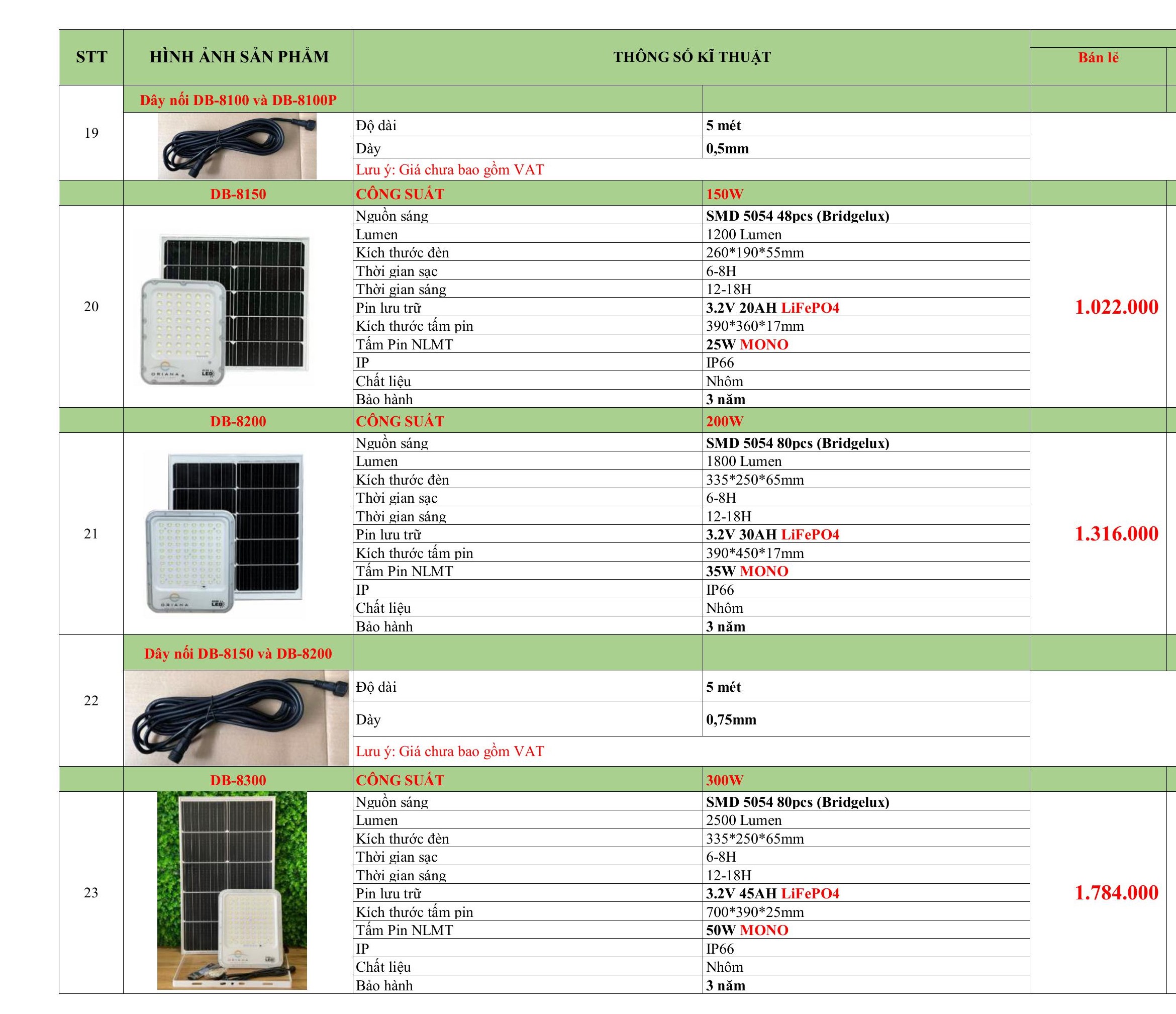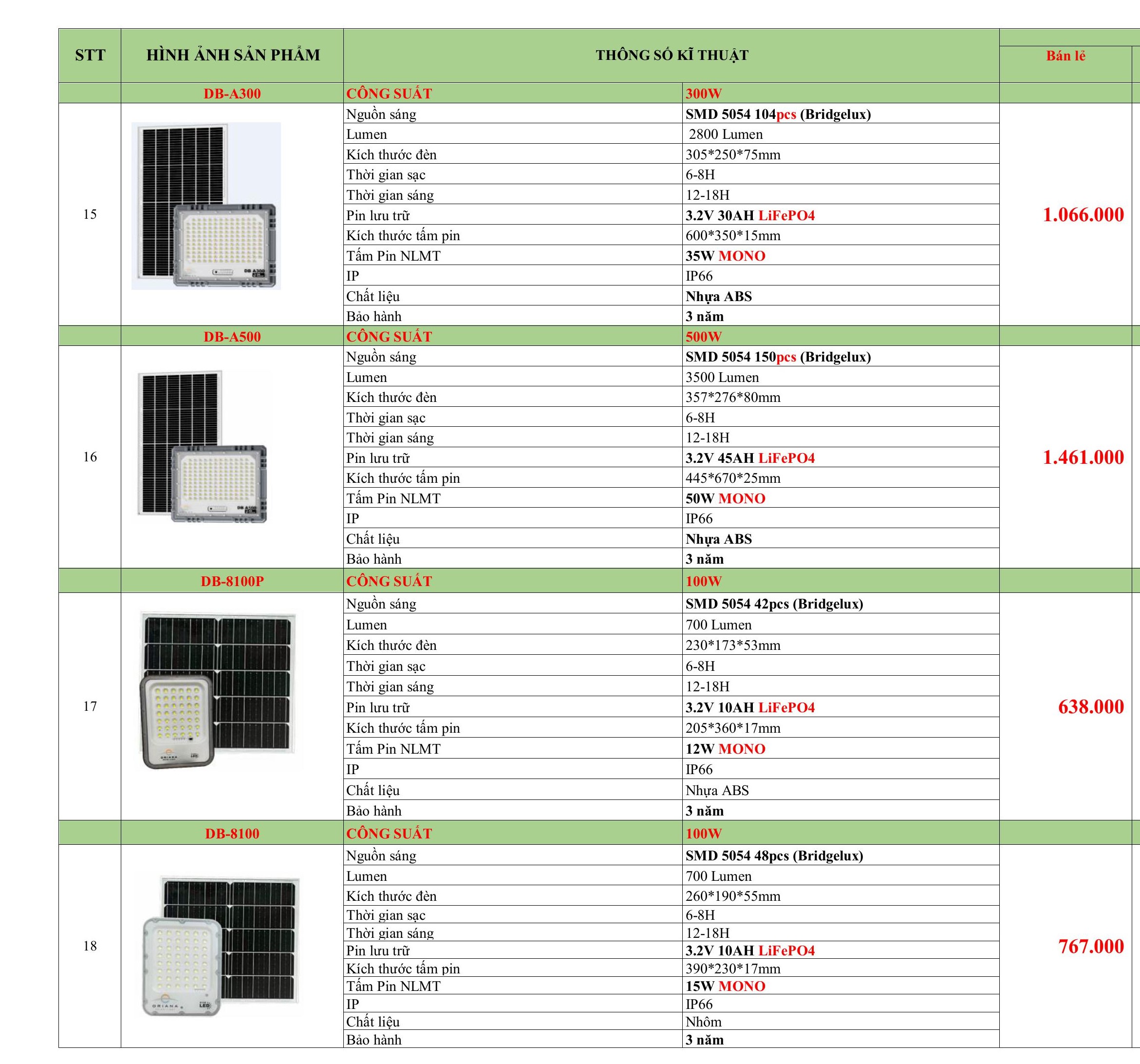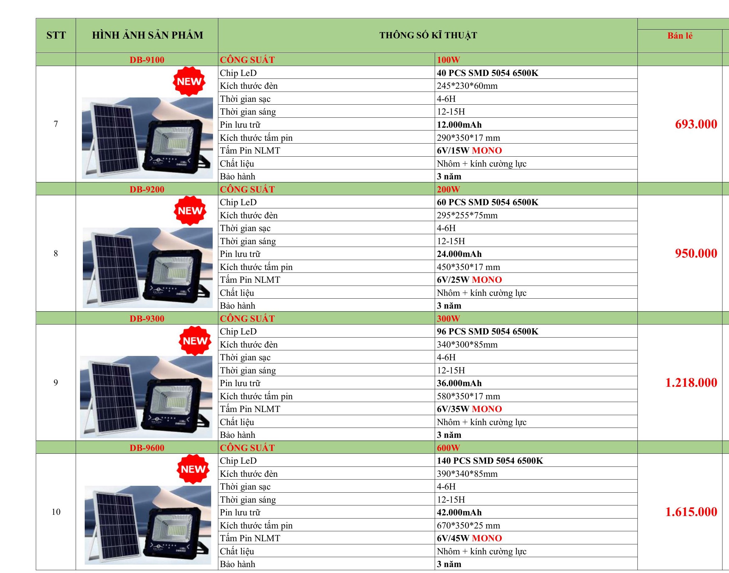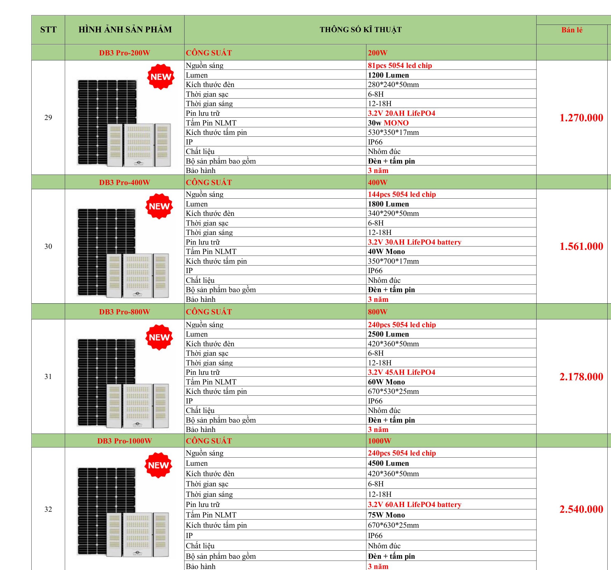 Bảng Giá Đèn Năng Lượng Mặt Trời 2025