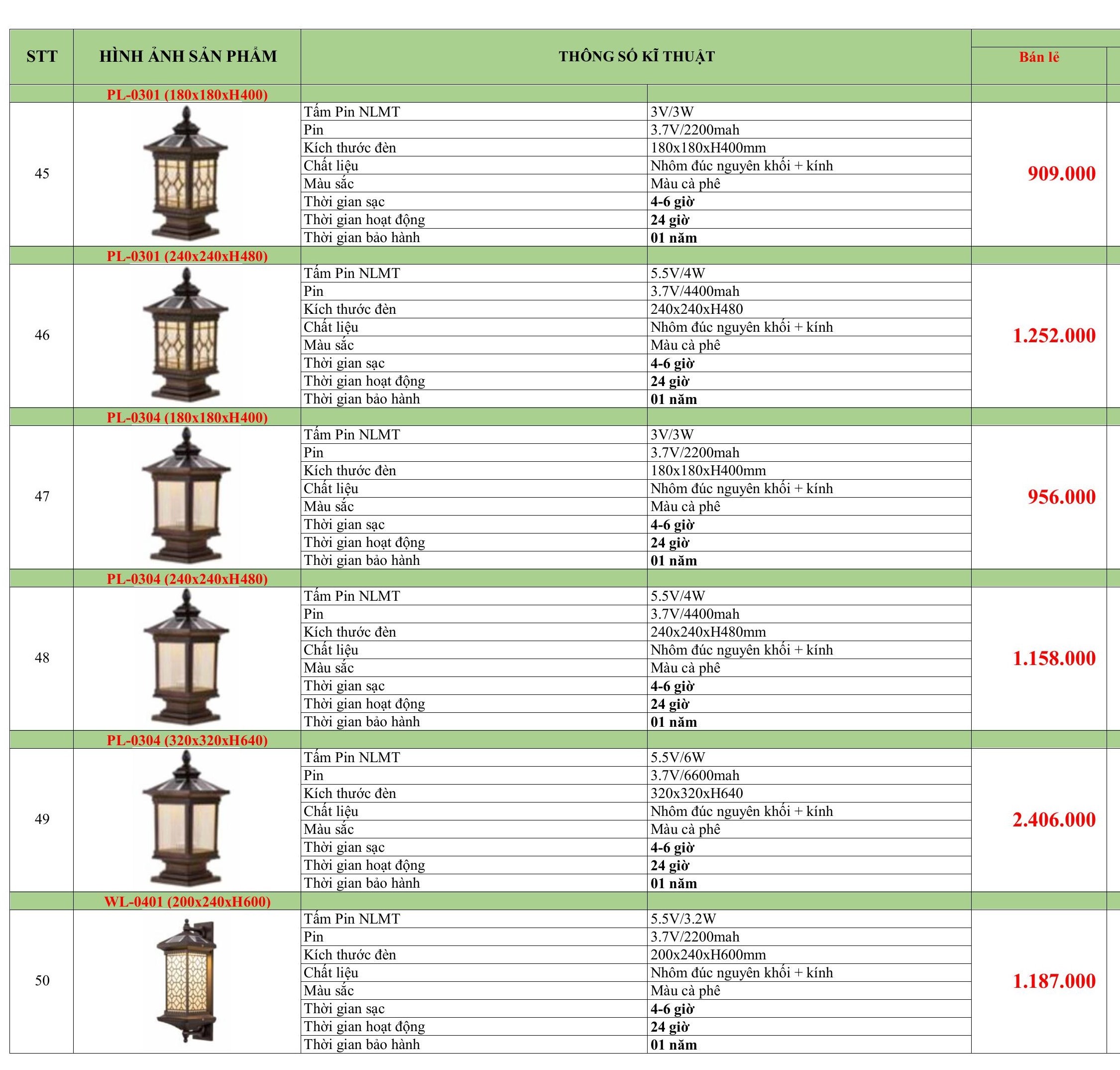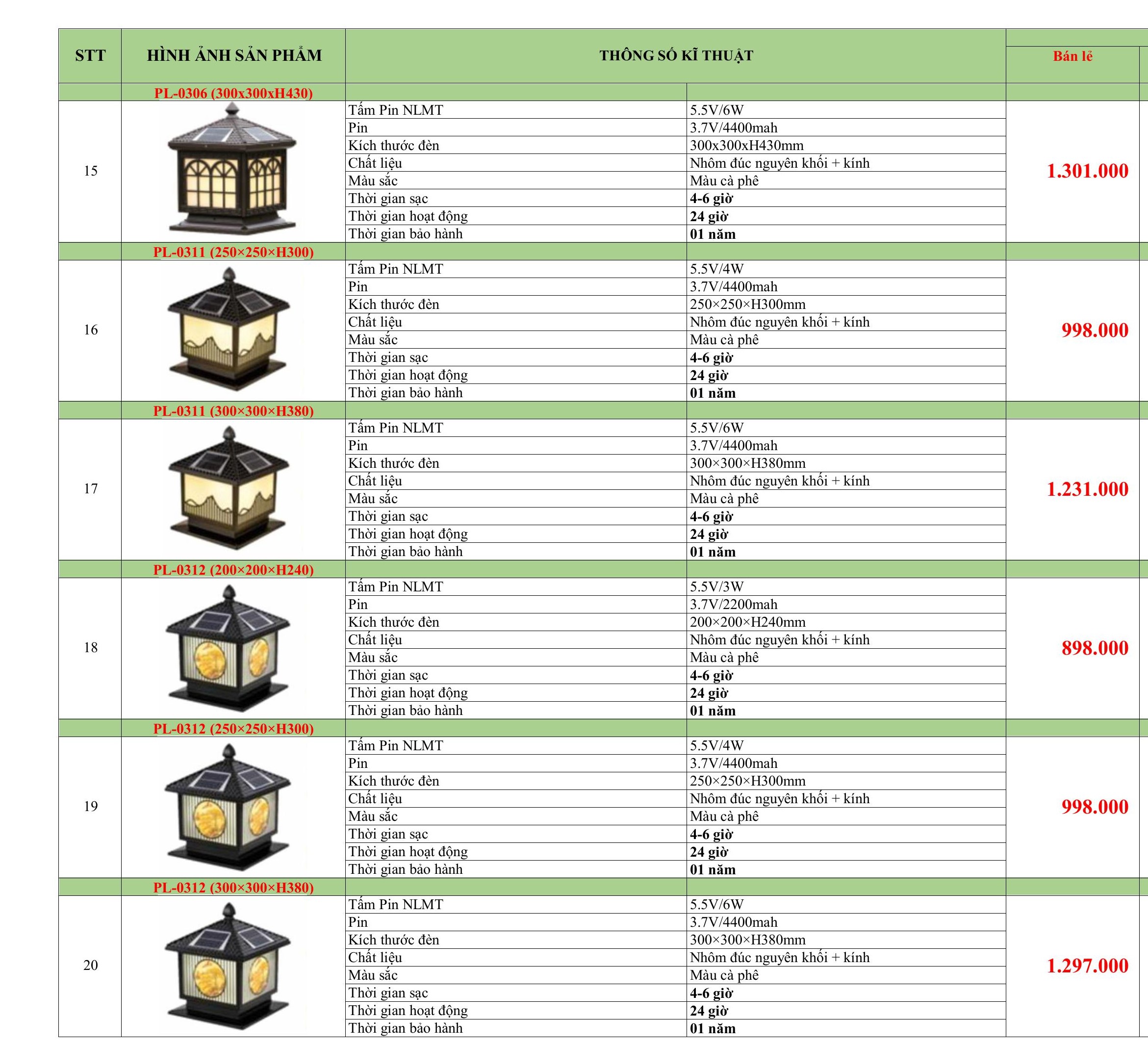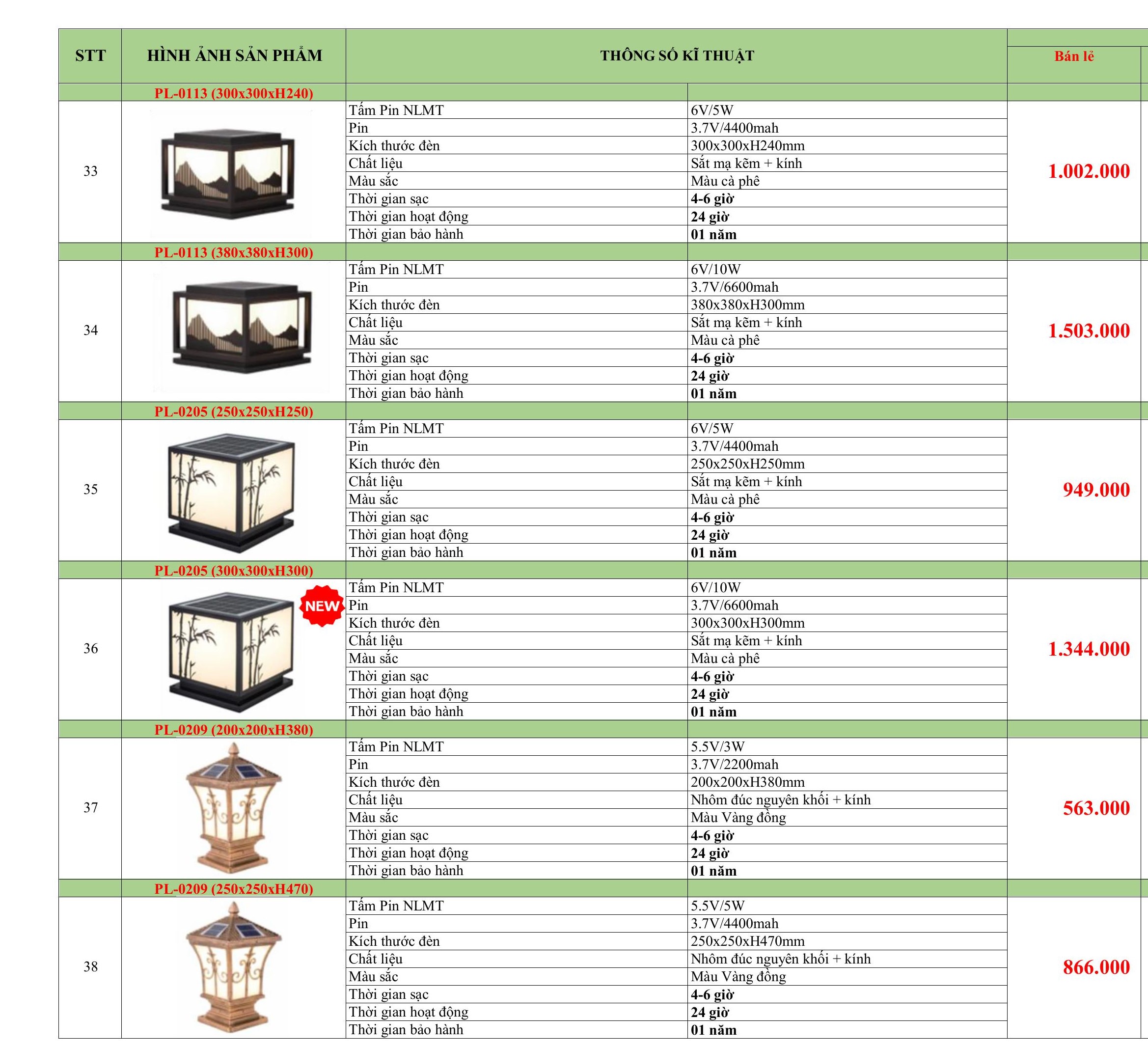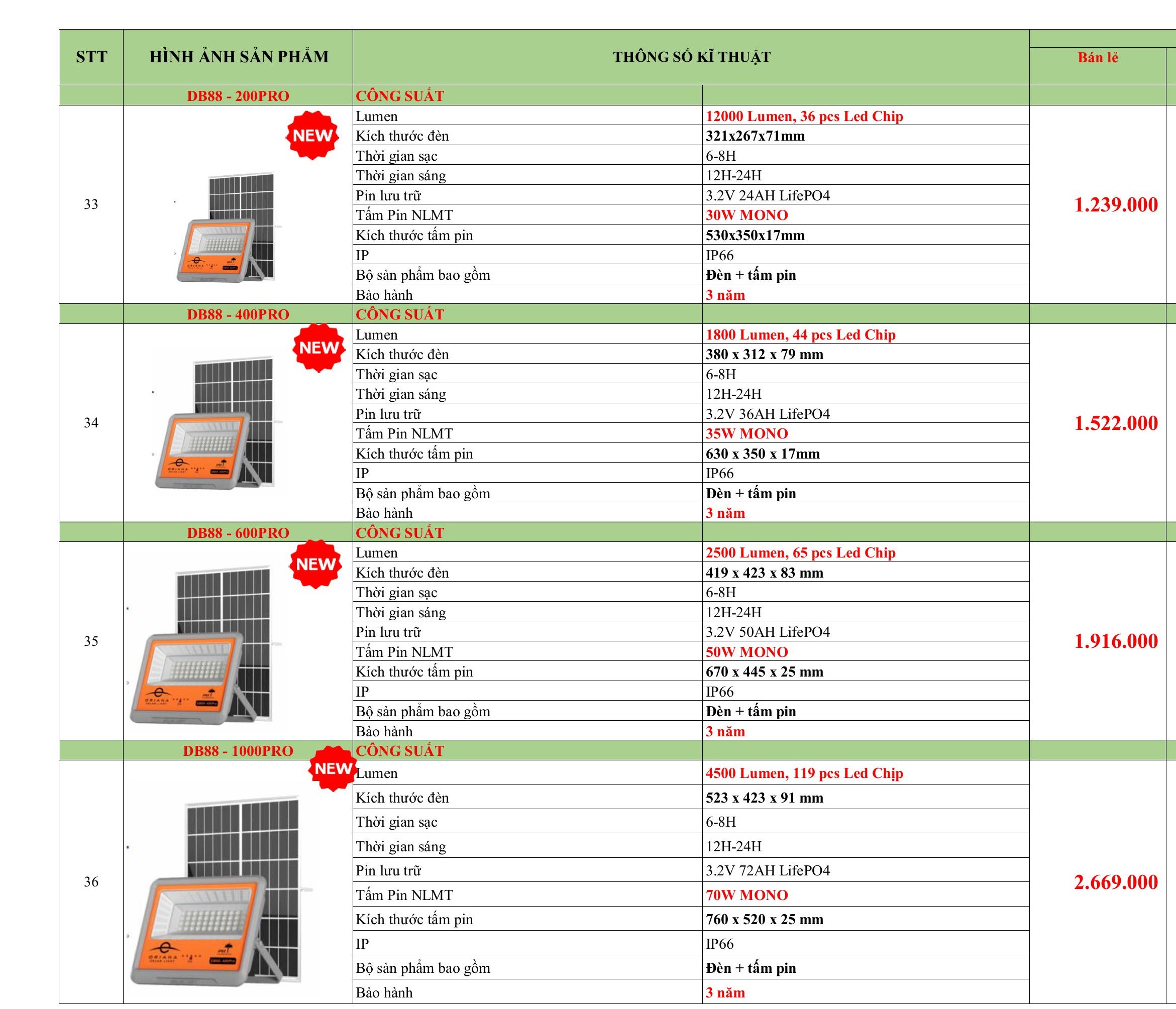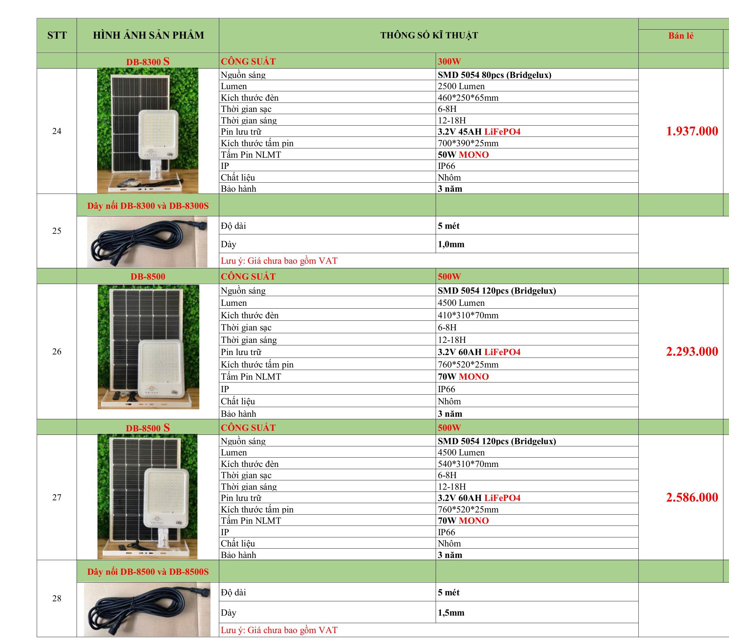 Bảng Giá Đèn Năng Lượng Mặt Trời 2025
