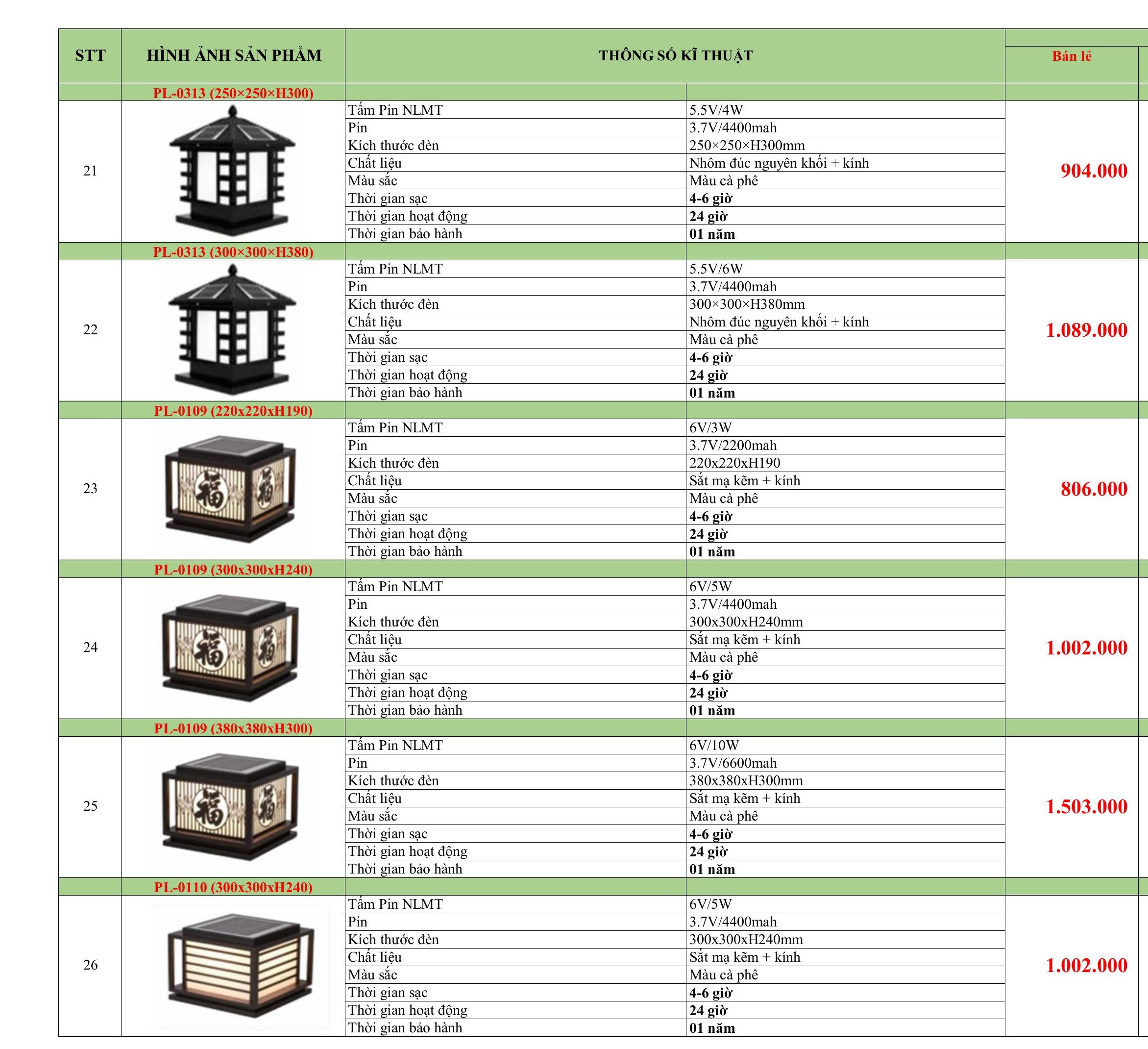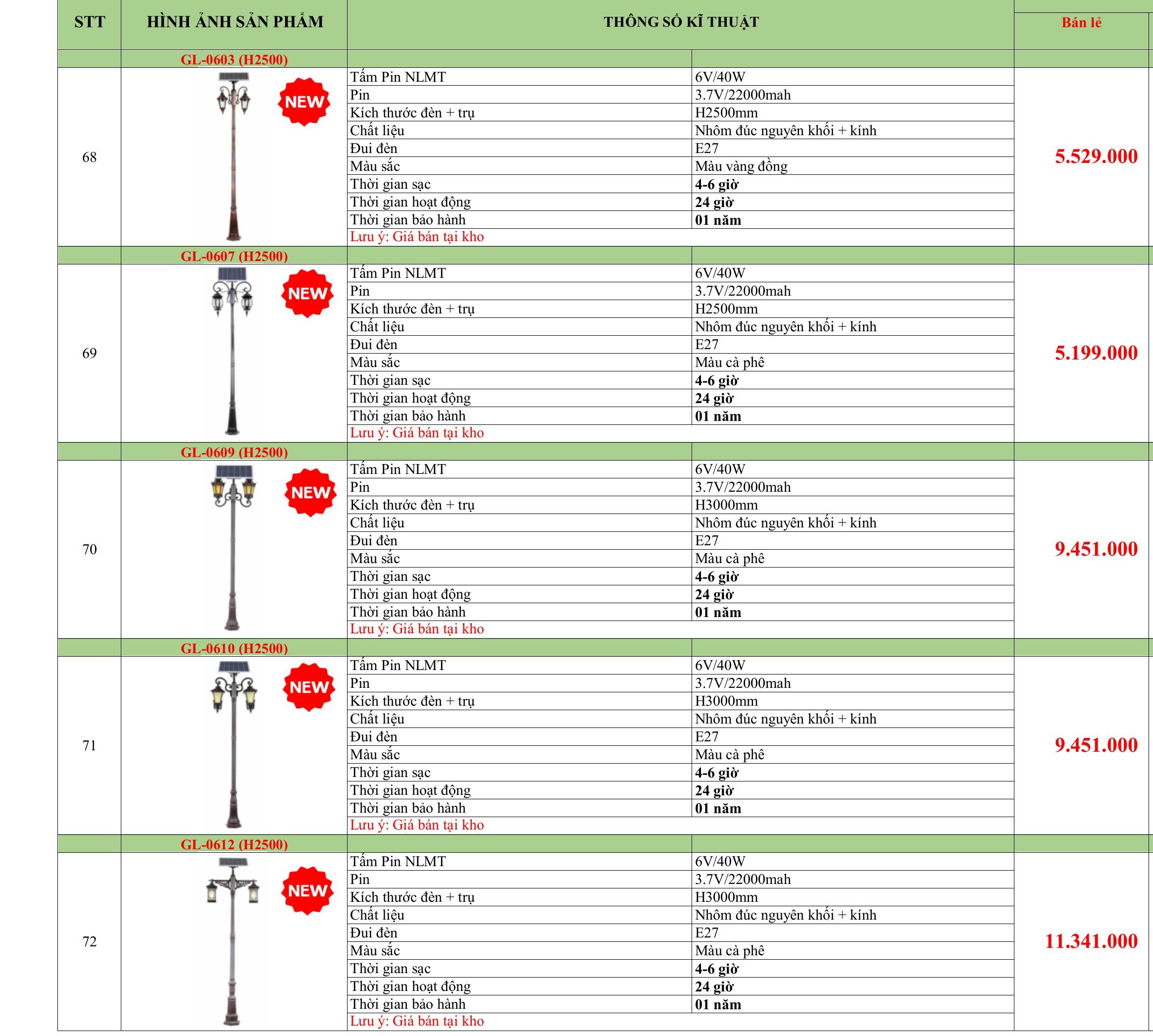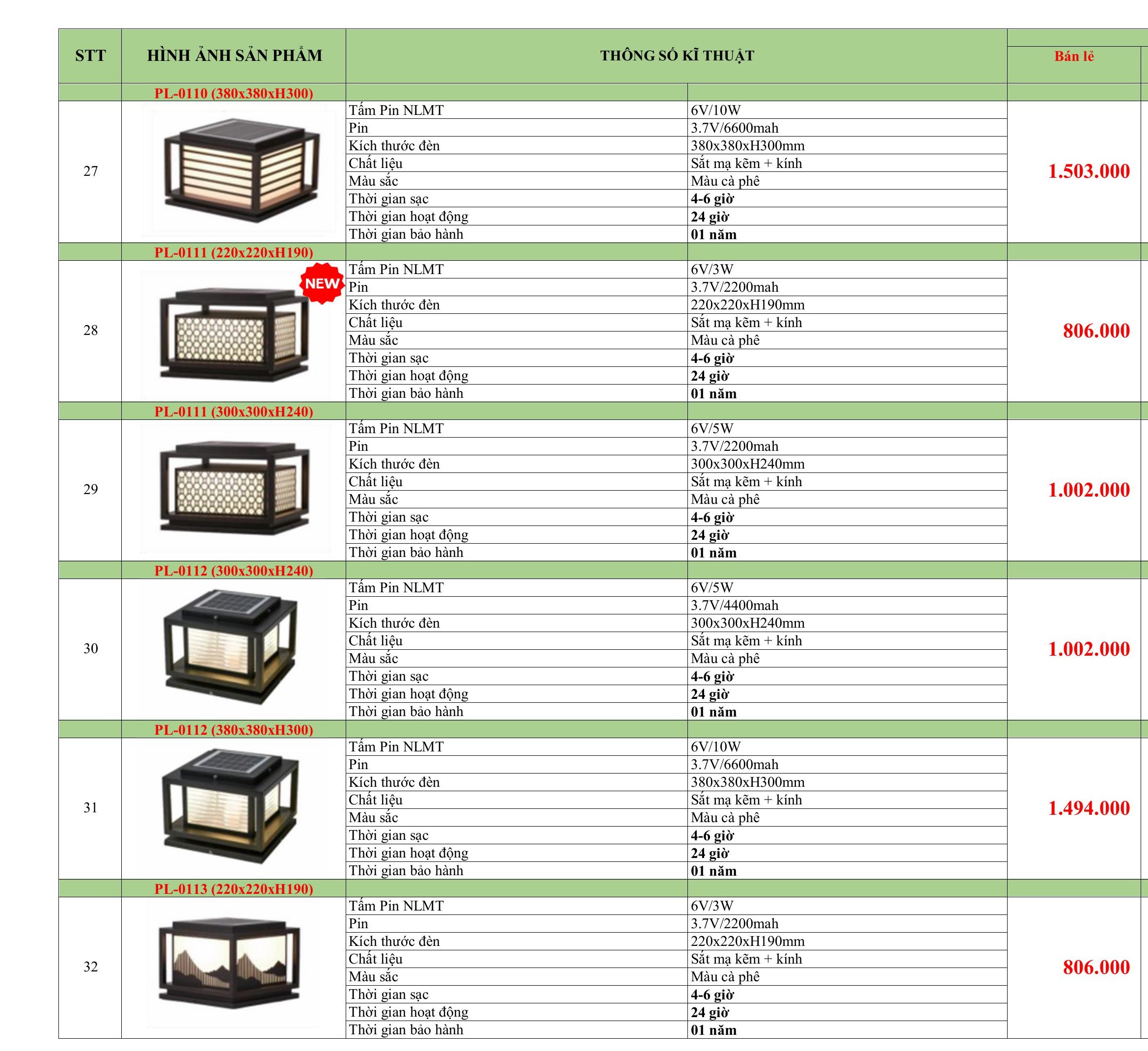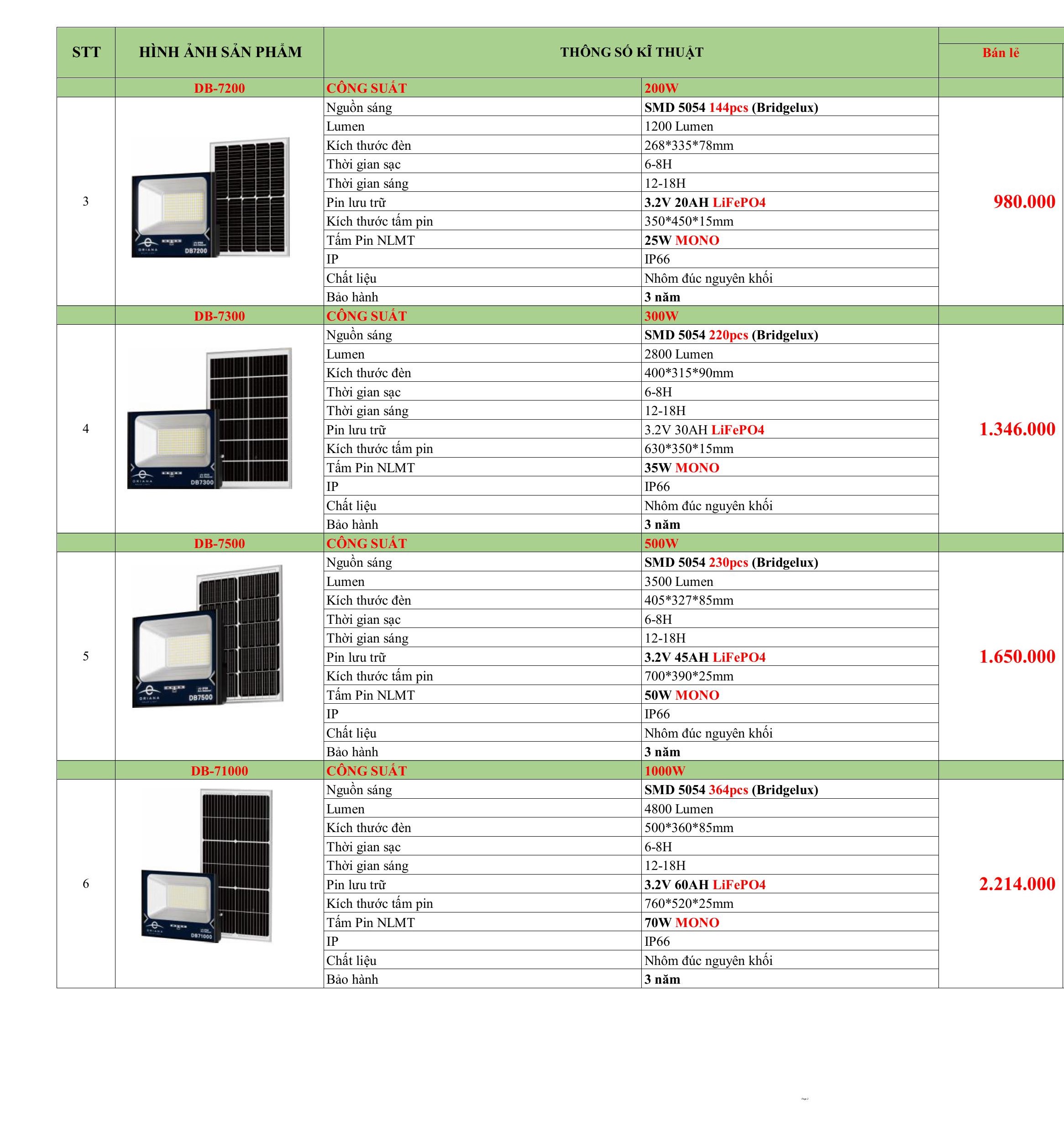 Bảng Giá Đèn Năng Lượng Mặt Trời 2025