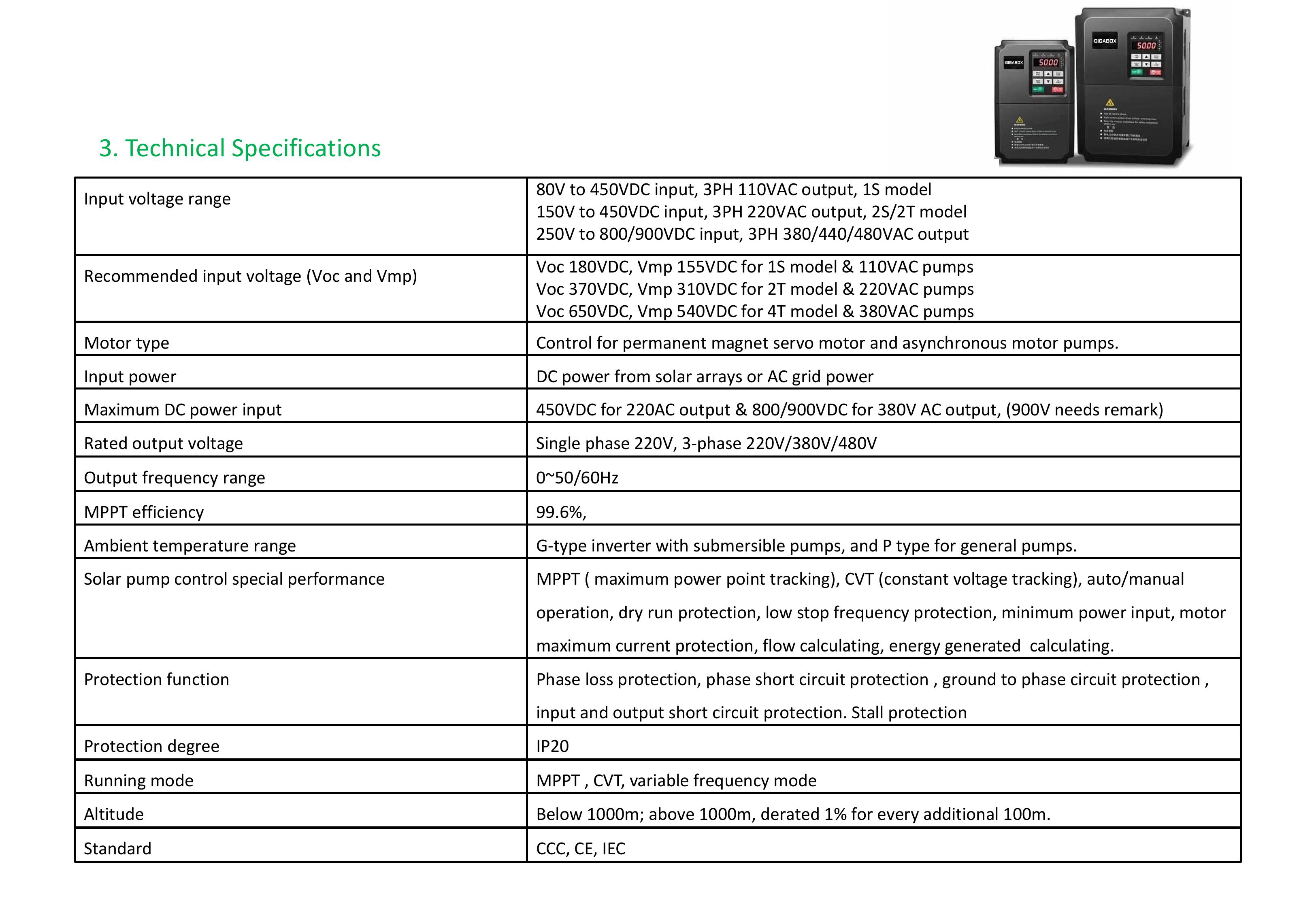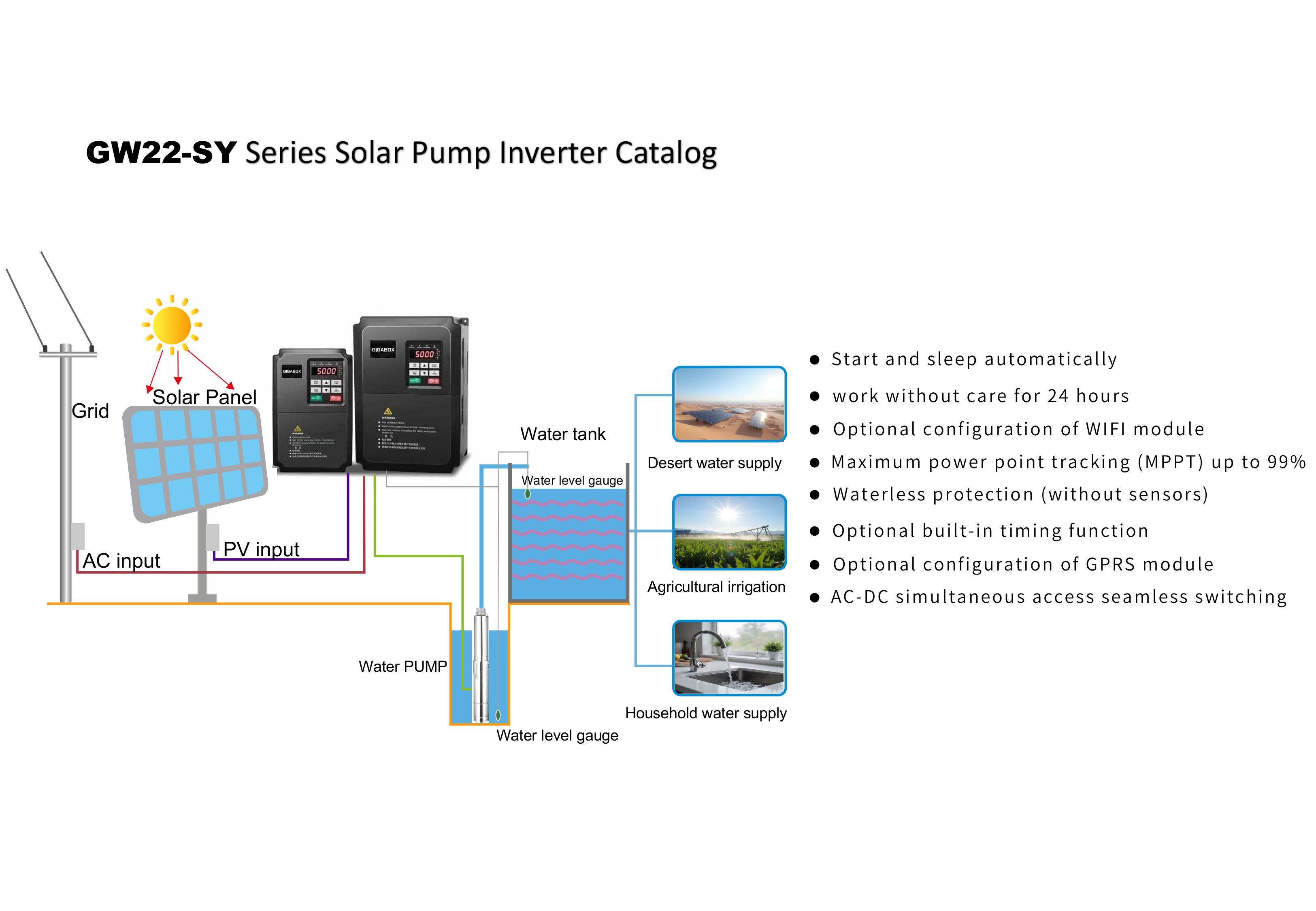 Dưới đây là thông tin chi tiết về dòng sản phẩm biến tần bơm năng lượng mặt trời (Solar Pump Inverter) mã hiệu GW22-SY của thương hiệu GIGABOX.