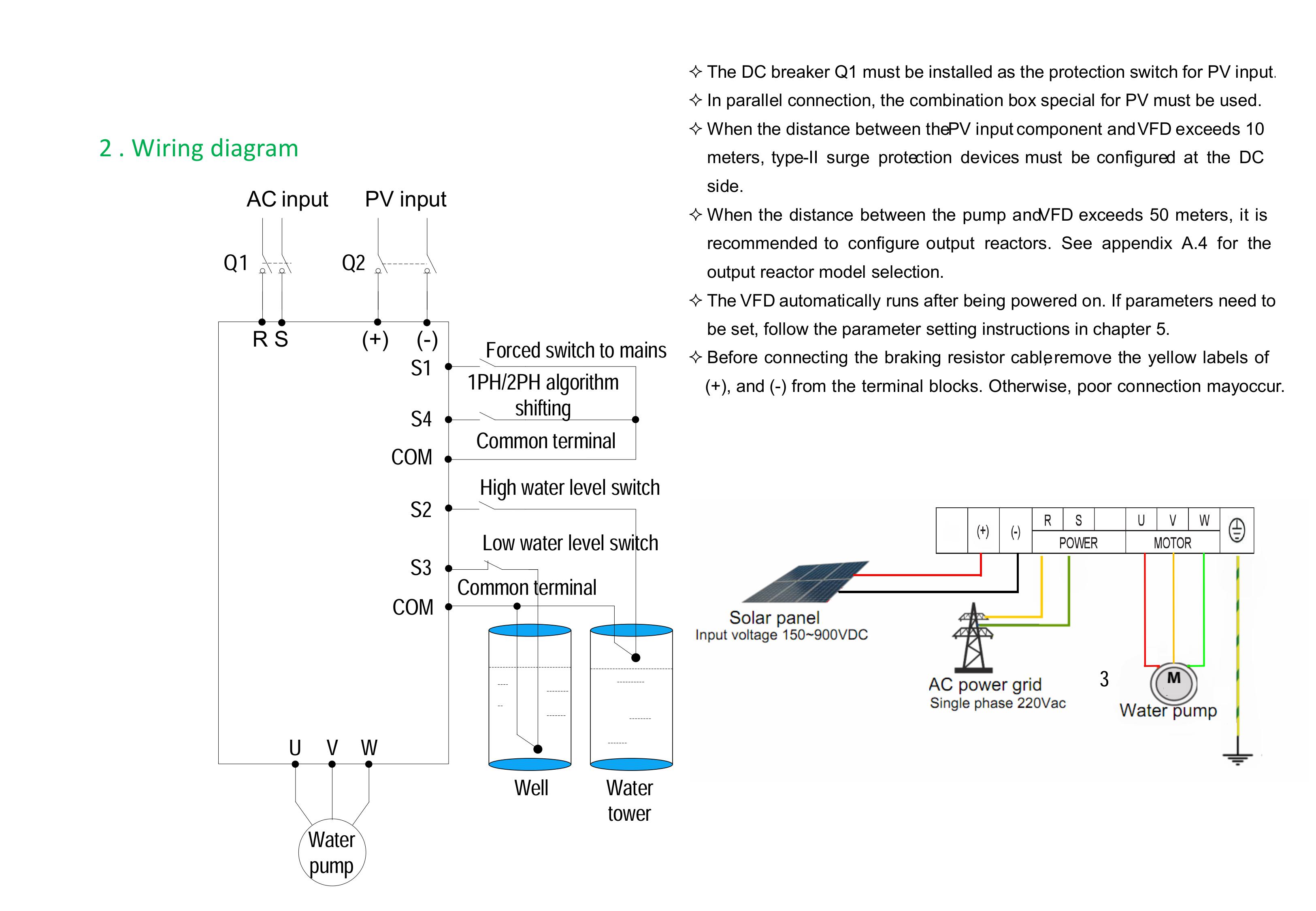 Lưu ý lắp đặt: * Cần lắp đặt thiết bị đóng cắt (breaker) Q1 cho đầu vào PV để bảo vệ hệ thống.