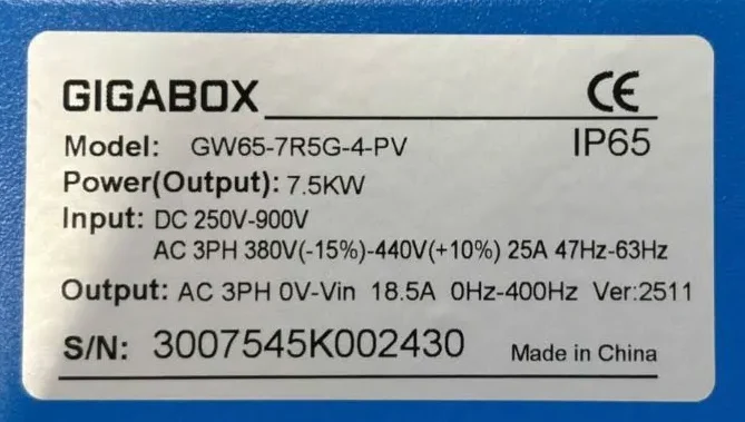 BIẾN TẦN BƠM GIGABOX 7.5KW 3 PHA (chuẩn IP65)