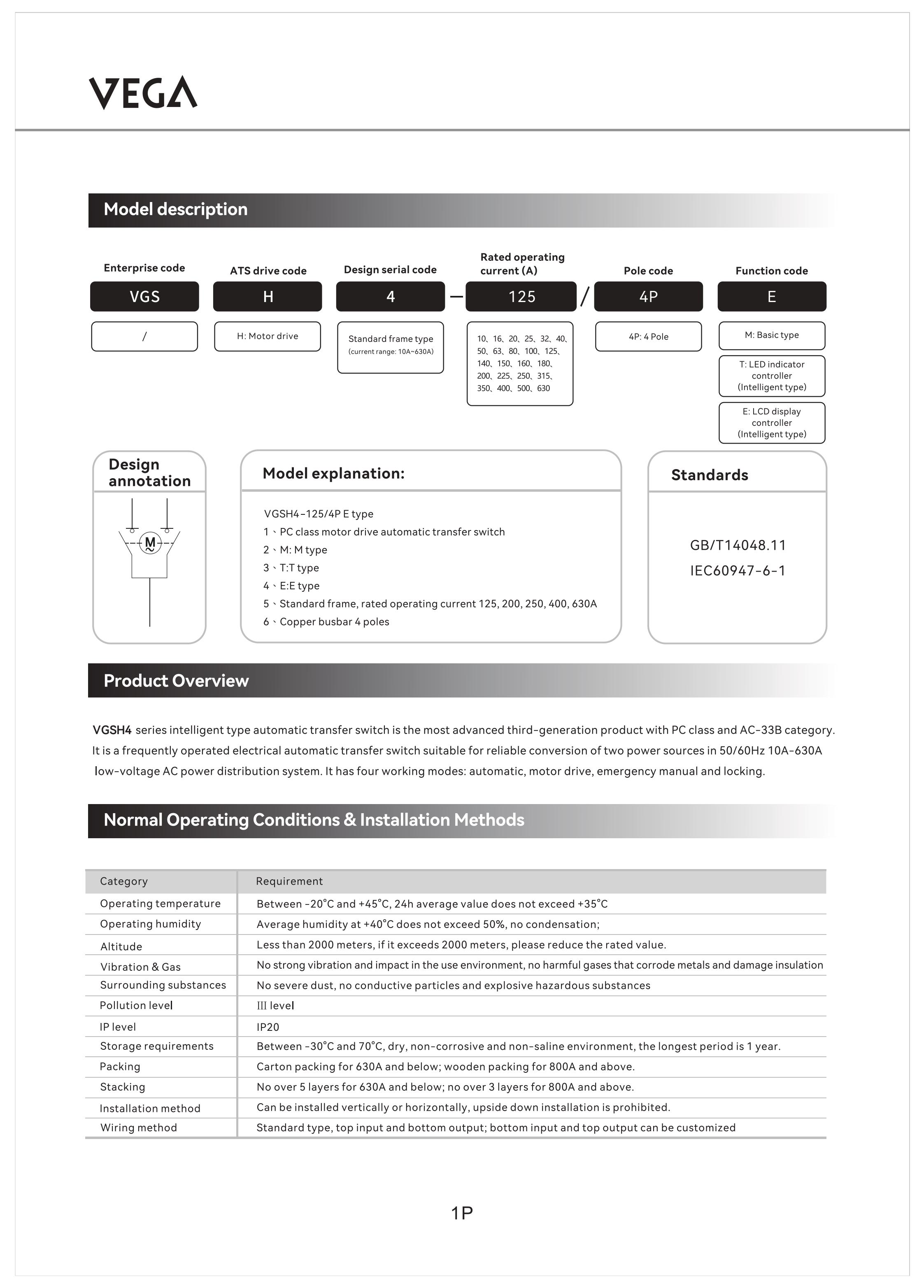 Bộ chuyển nguồn tự động ATS 125A VEGA Smart- VGSH4-125