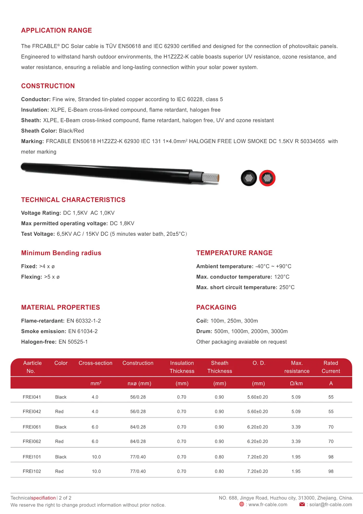 Tải Catalogue: FRCABLE Datasheet EN&IEC Solar Cable DC 1.5kV