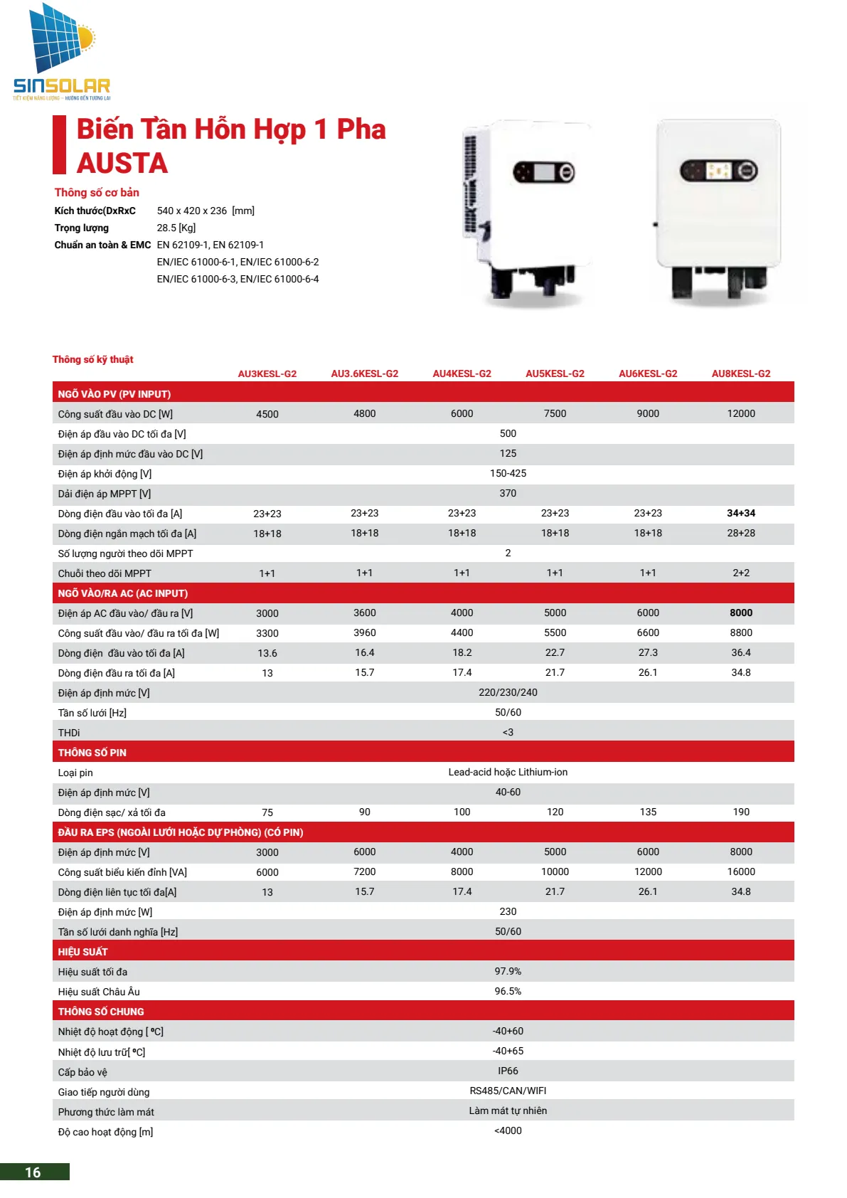 INVERTER HYBRID AUSTA 5KW 1 PHA AU5KESL-G2