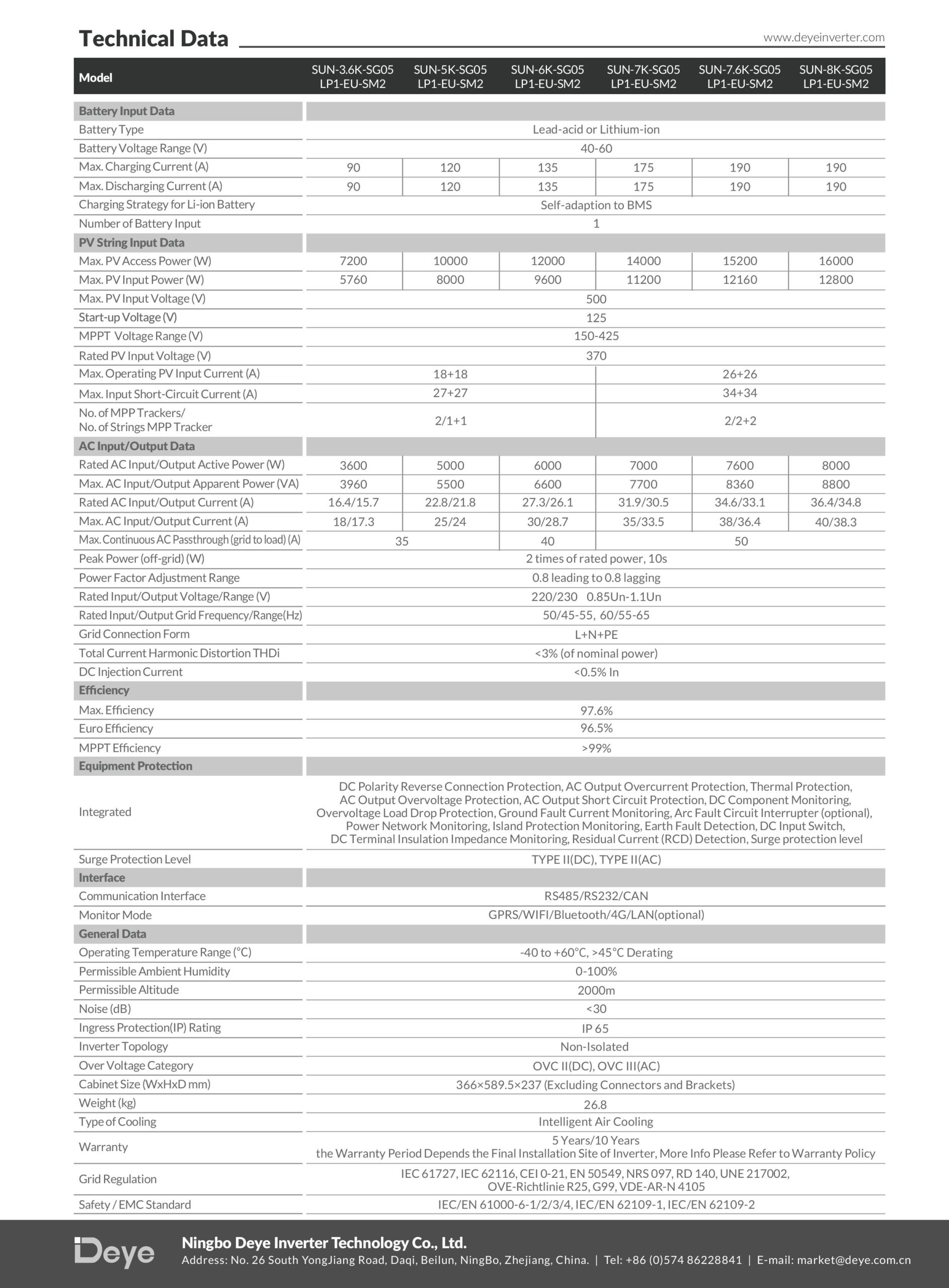 - – Công suất PV chuyển đổi tối đa: 8000W