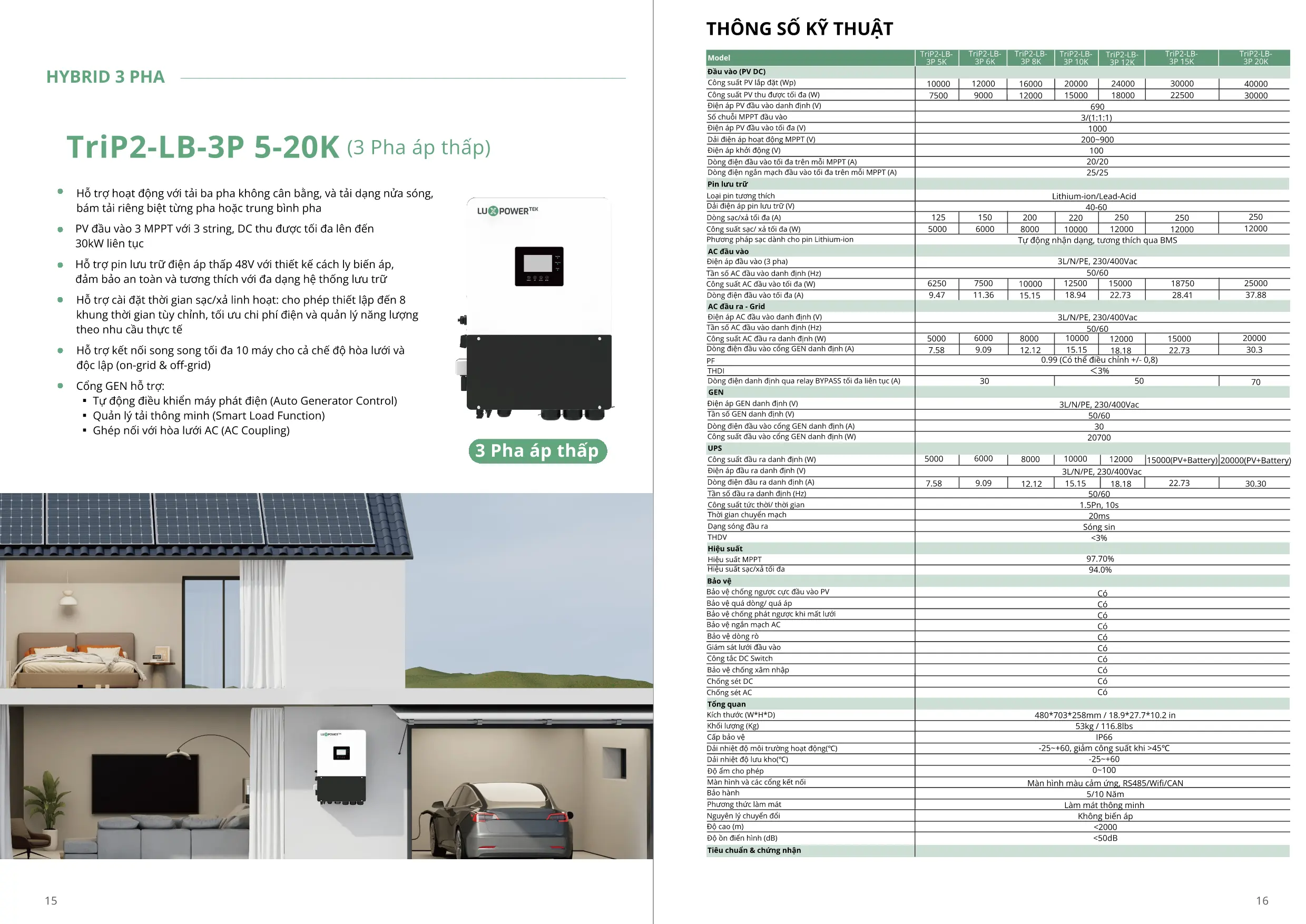• Công suất ra AC: 15kW (3 pha 380V/400V).