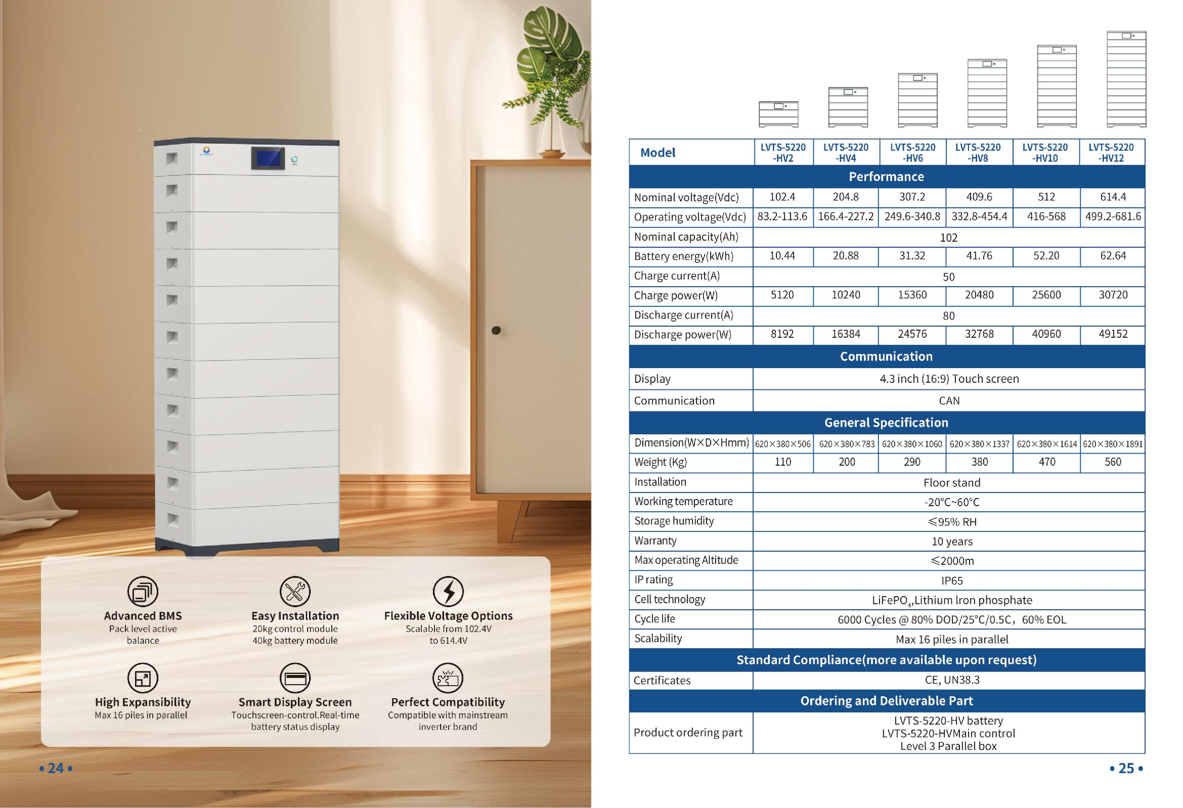 LVTS-5220 HVX là giải pháp lưu trữ năng lượng điện áp cao. Hệ thống pin Lithium-Ion này rất tiên tiến. Nó được thiết kế cho cả hộ gia đình và thương mại nhỏ. Sản phẩm có kiến trúc mô-đun và xếp chồng linh hoạt. Điều này cho phép lắp đặt nhanh chóng, dễ dàng cắm và chạy. LVTS-5220 HVX đảm bảo hiệu suất tối ưu và khả năng mở rộng.