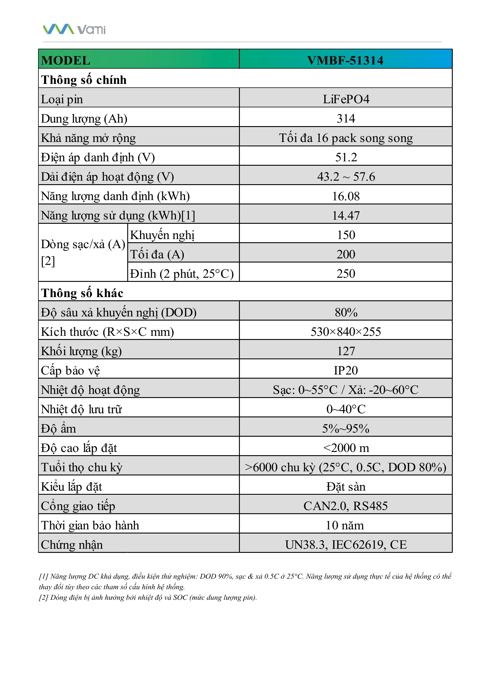 Pin Lưu Trữ VAMI 16kWh VMBF-51314