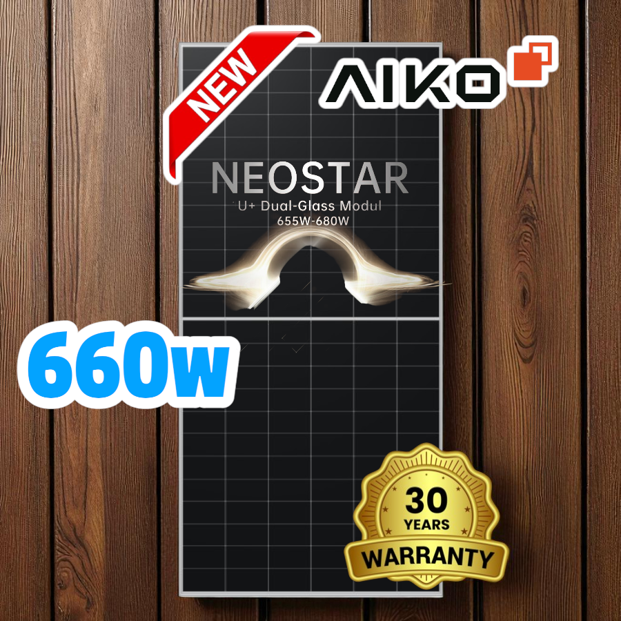 Tấm pin mặt trời N-type ABC AIKO 660w 2 mặt kính- Cao Cấp