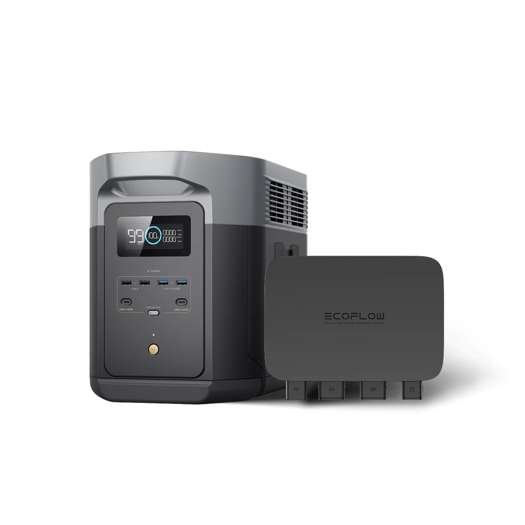- Sạc qua cổng ô tô: Hỗ trợ sạc từ cổng 12V/24V của ô tô. EcoFlow còn có bộ sạc máy phát điện thông minh (Alternator Charger) tùy chọn, có thể sạc DELTA 2 đầy 1kWh chỉ trong 1.3 giờ khi đang lái xe.