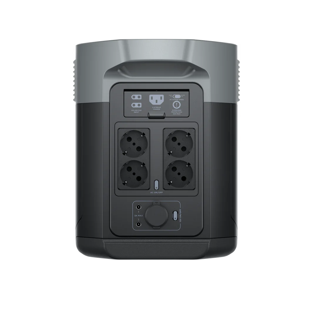 - 1800W AC đầu ra liên tục: Cho phép DELTA 2 cấp điện cho hơn 90% thiết bị gia dụng thông thường, bao gồm tủ lạnh, lò vi sóng, máy pha cà phê, TV, quạt, v.v.