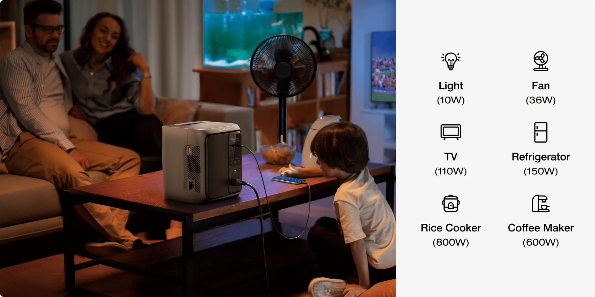 • Công suất AC: 500W (Hỗ trợ X-Boost lên đến 800W cho thiết bị gia dụng).