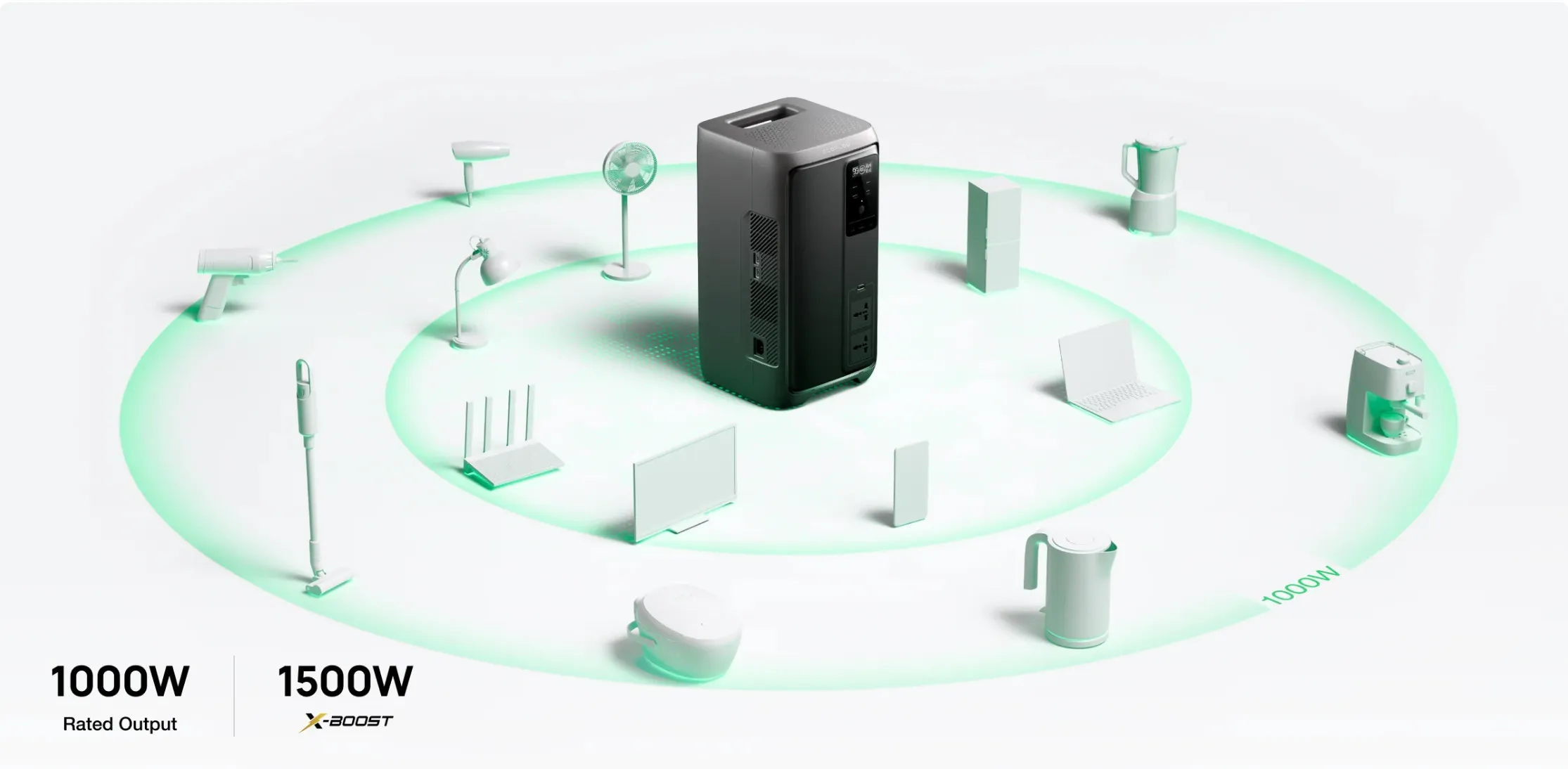 • Công suất AC: 1000W (X-Boost lên 1500W).